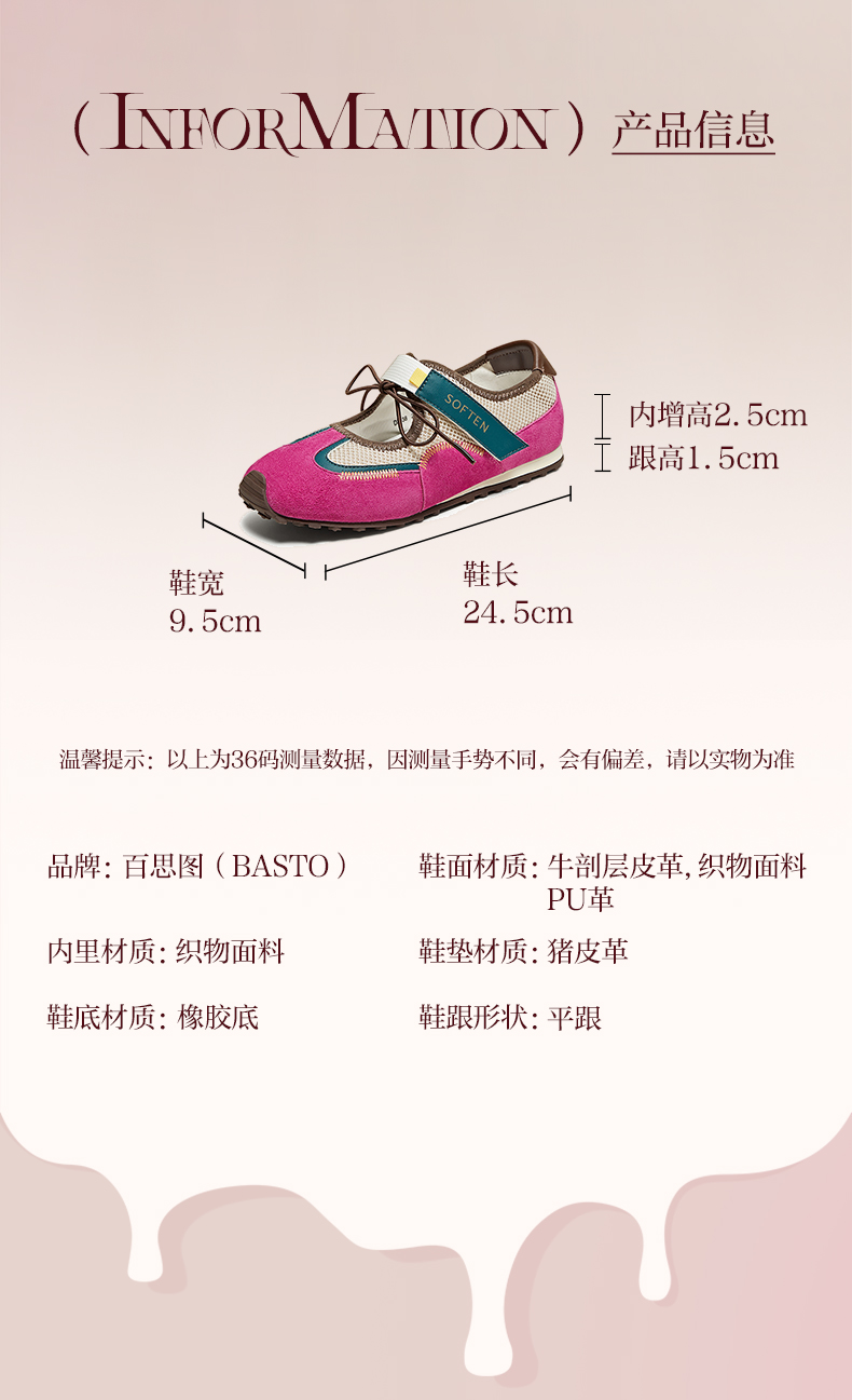 BASTO(百思图),品牌拥有17年历史,秉承优雅、甜美、清新的设计理念,主张“好嫁风”的产品风格,将甜美俏丽的少女情怀融合优雅气质的时尚品味,塑造出唯美优雅、受欢迎的女鞋款式。主打以女性温柔与亲和力为特色的流行时尚产品,糅合雅致又富有亲和力的裸粉色调,淑媛端庄、清新甜美。目前品牌已开设线下门店达1400多家。
