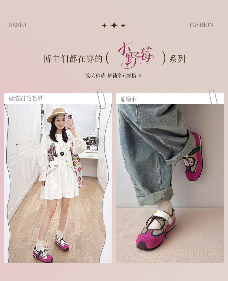 BASTO(百思图),品牌拥有17年历史,秉承优雅、甜美、清新的设计理念,主张“好嫁风”的产品风格,将甜美俏丽的少女情怀融合优雅气质的时尚品味,塑造出唯美优雅、受欢迎的女鞋款式。主打以女性温柔与亲和力为特色的流行时尚产品,糅合雅致又富有亲和力的裸粉色调,淑媛端庄、清新甜美。目前品牌已开设线下门店达1400多家。