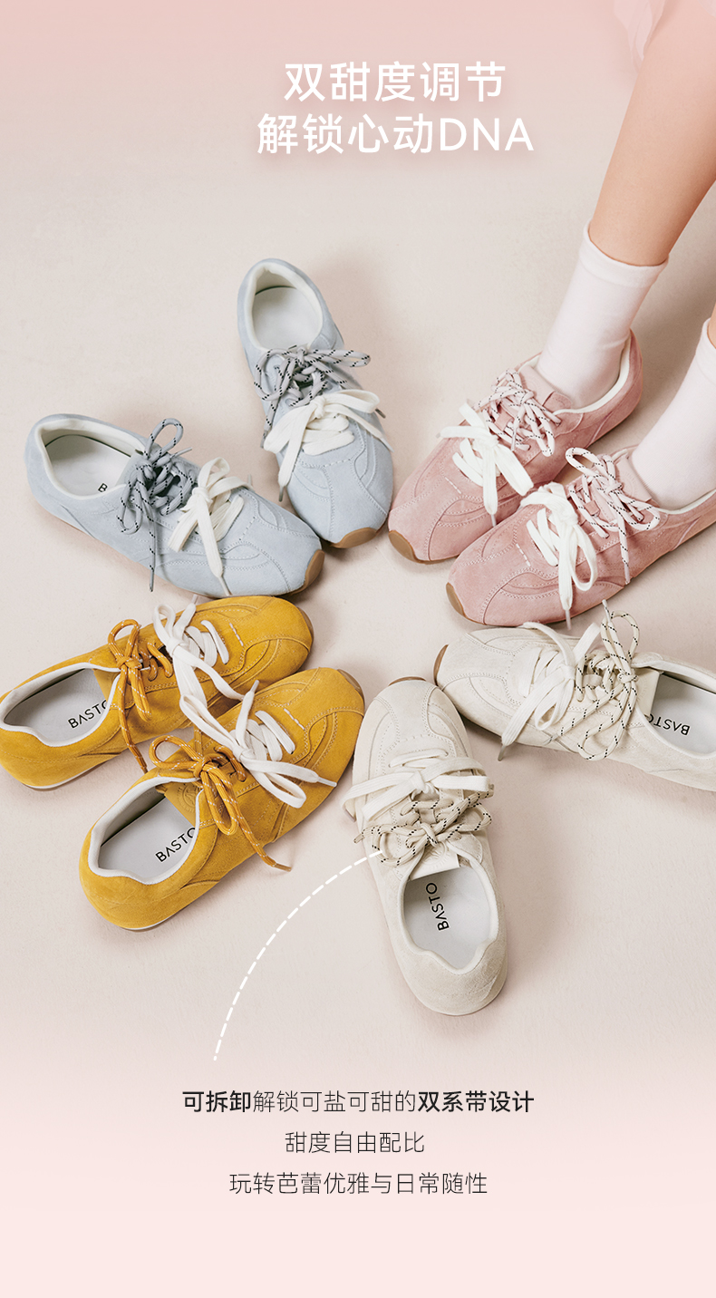 BASTO(百思图),品牌拥有17年历史,秉承优雅、甜美、清新的设计理念,主张“好嫁风”的产品风格,将甜美俏丽的少女情怀融合优雅气质的时尚品味,塑造出唯美优雅、受欢迎的女鞋款式。主打以女性温柔与亲和力为特色的流行时尚产品,糅合雅致又富有亲和力的裸粉色调,淑媛端庄、清新甜美。目前品牌已开设线下门店达1400多家。