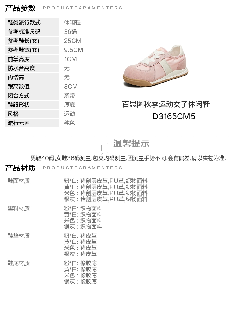 | 鞋跟形状:厚底 | 参考鞋长(女):25CM | 流行元素:纯色 | 参考鞋宽(女):9.5CM | 风格:运动 |