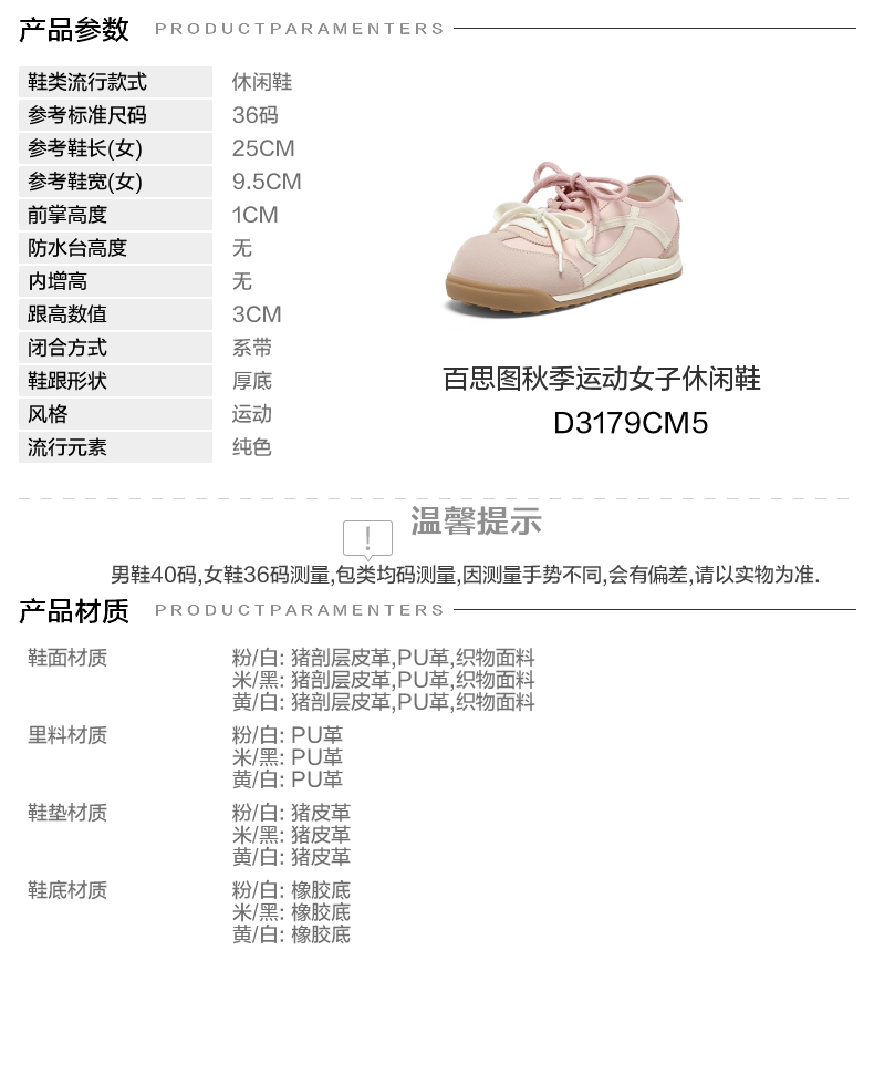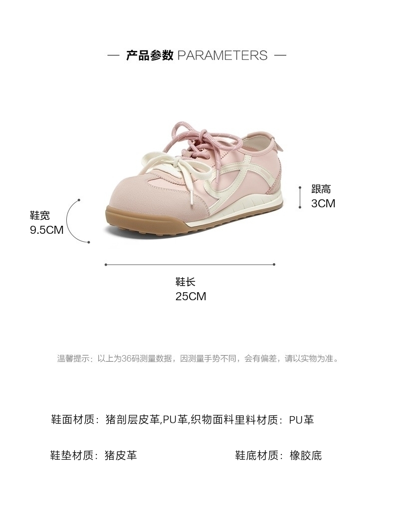 | 色系:粉色 | 跟高数值:3CM | 性别:女子 | 里料材质:PU革 | 制鞋工艺:胶贴皮鞋 |