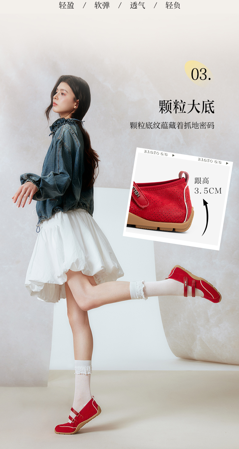 | 风格:休闲 | 跟高数值:3.5CM | 色系:红色 | 配跟:无 | 性别:女子 |
