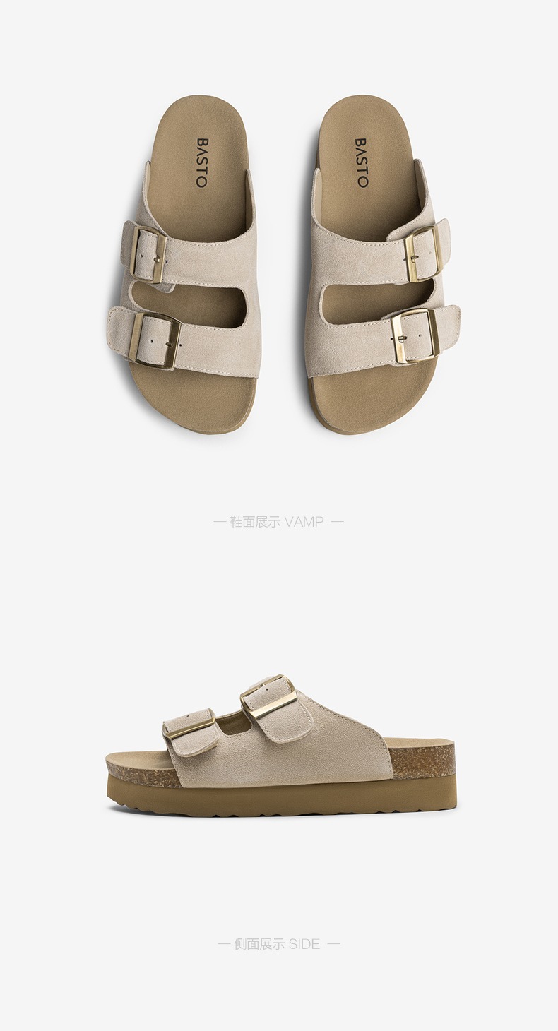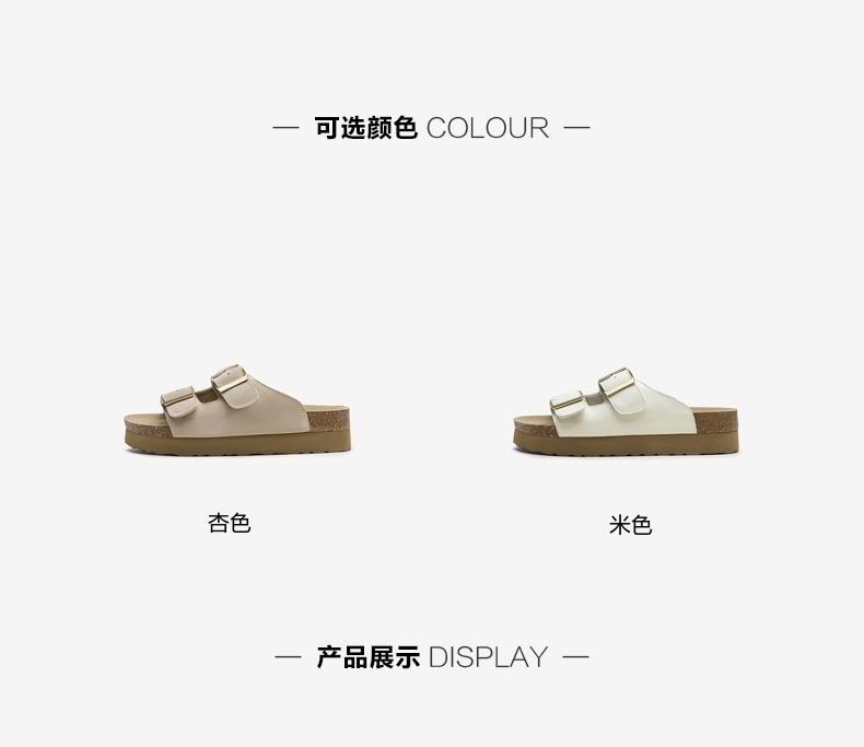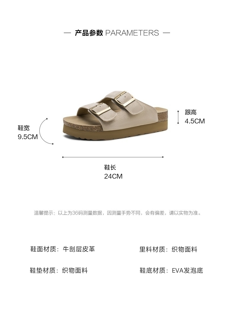 | 鞋头款式:露趾 | 鞋底材质:EVA发泡底 | 鞋面图案:纯色 | 鞋跟形状:厚底 | 鞋面材质:牛剖层皮革 |