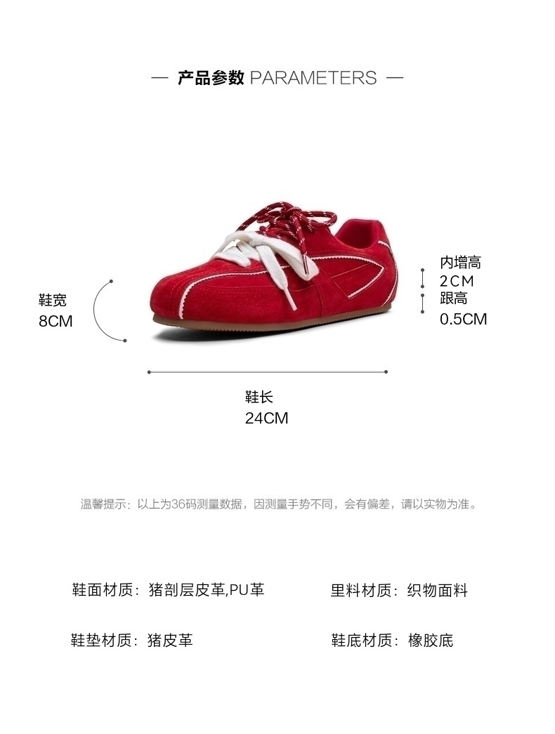 | 鞋帮:低帮 | 鞋底材质:橡胶底 | 内增高:2CM | 鞋面材质:PU革猪剖层皮革 | 闭合方式:系带 |