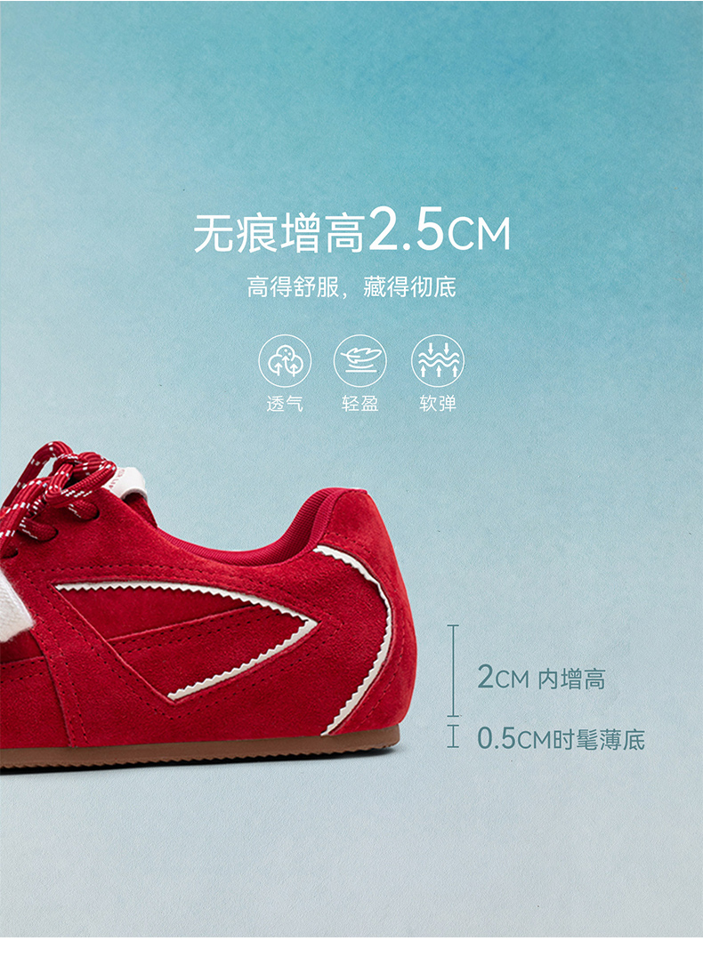 | 鞋帮:低帮 | 鞋底材质:橡胶底 | 内增高:2CM | 鞋面材质:PU革猪剖层皮革 | 闭合方式:系带 |