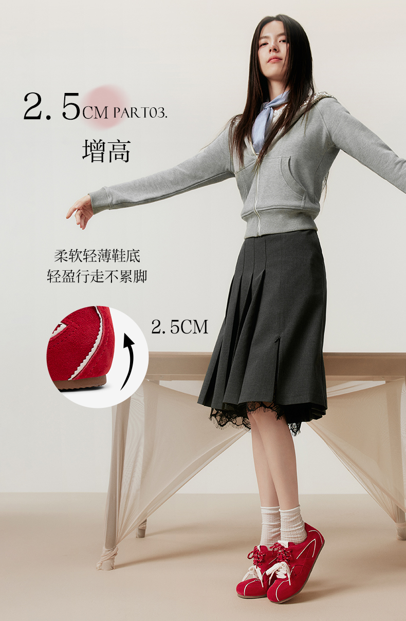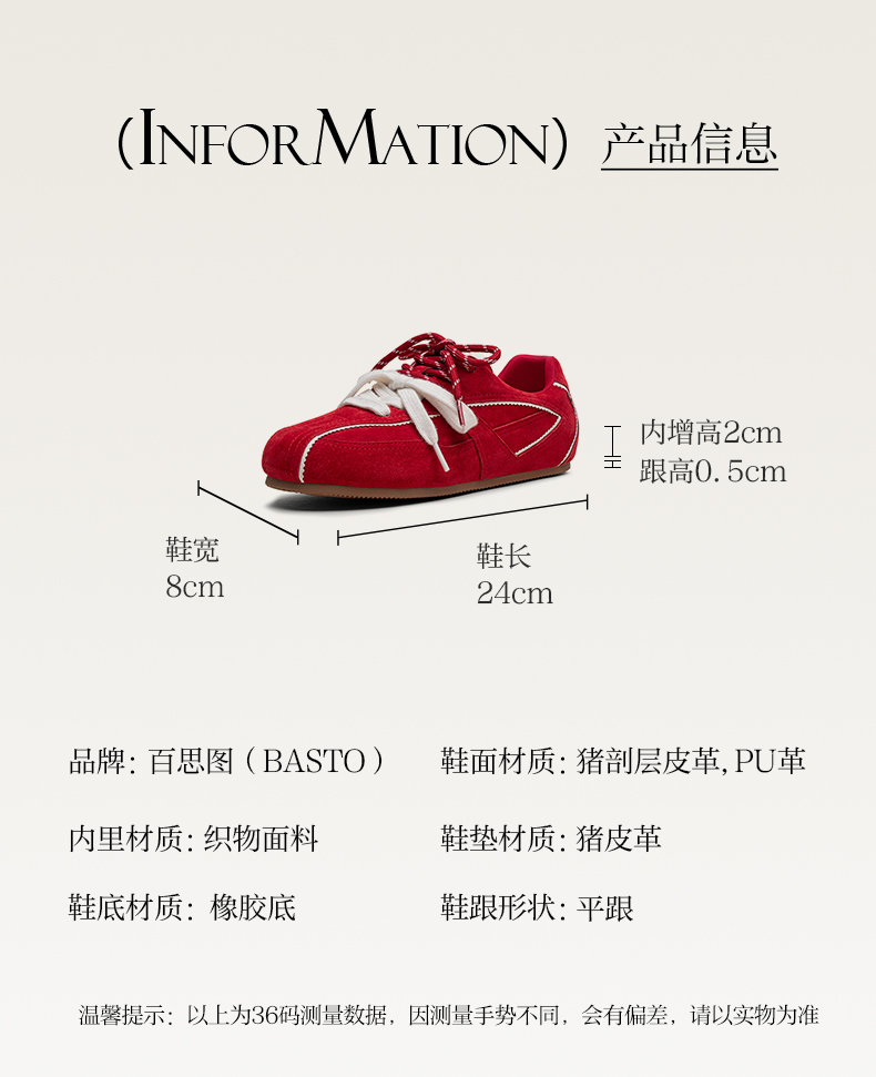 | 鞋帮:低帮 | 鞋底材质:橡胶底 | 内增高:2CM | 鞋面材质:PU革猪剖层皮革 | 闭合方式:系带 |
