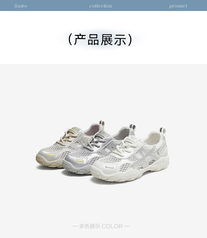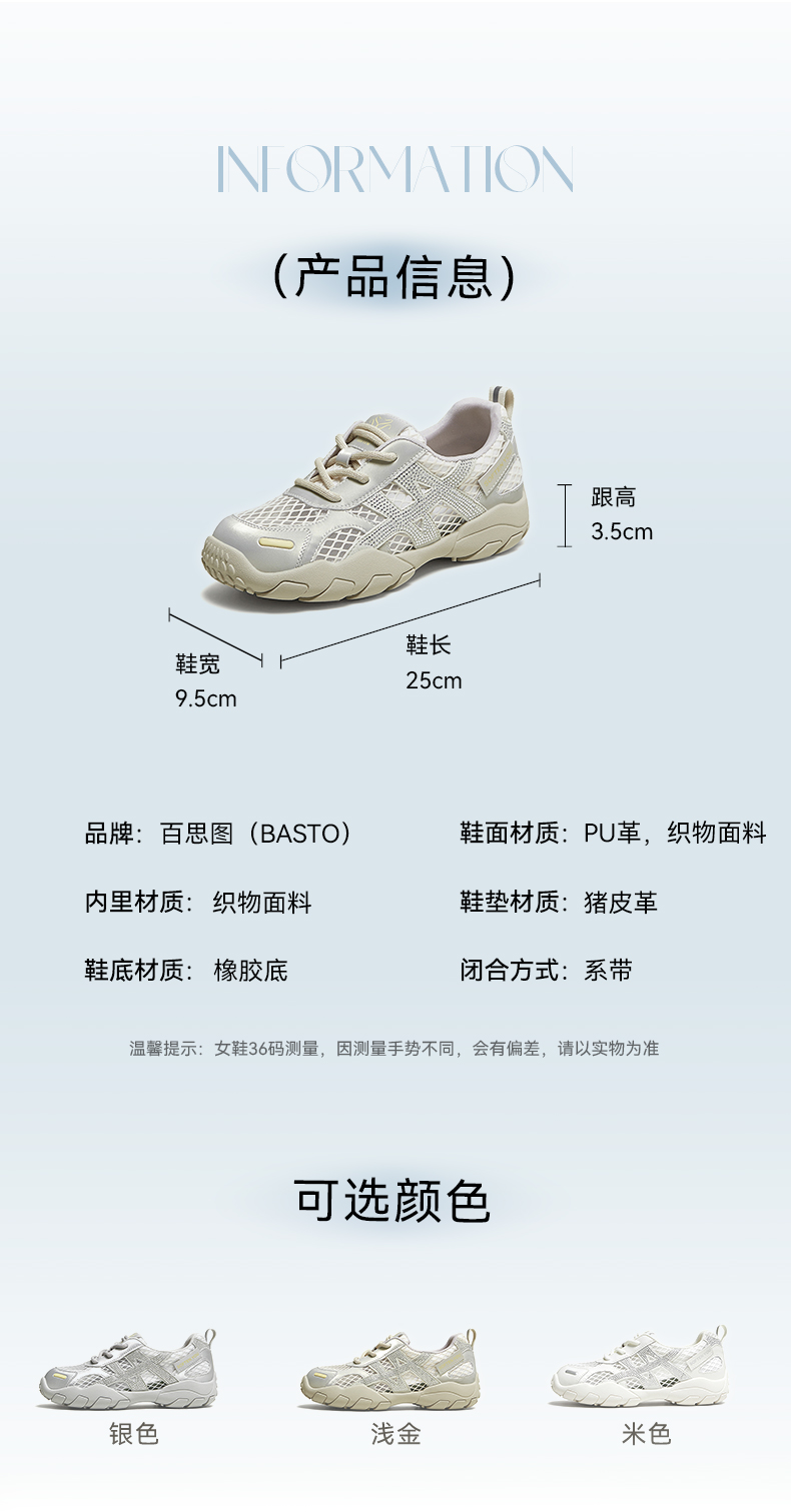 BASTO(百思图),品牌拥有17年历史,秉承优雅、甜美、清新的设计理念,主张“好嫁风”的产品风格,将甜美俏丽的少女情怀融合优雅气质的时尚品味,塑造出唯美优雅、受欢迎的女鞋款式。主打以女性温柔与亲和力为特色的流行时尚产品,糅合雅致又富有亲和力的裸粉色调,淑媛端庄、清新甜美。目前品牌已开设线下门店达1400多家。
