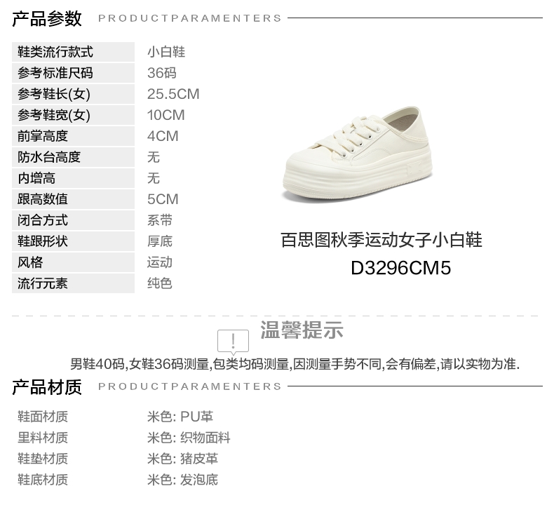 | 配跟:无 | 上市时间:2025年秋季 | 鞋类流行款式:小白鞋 | 鞋头款式:圆头 | 鞋面图案:纯色 |