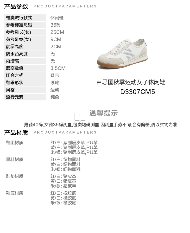 | 鞋跟形状:厚底 | 参考鞋长(女):25CM | 流行元素:纯色 | 参考鞋宽(女):9CM | 风格:运动 |