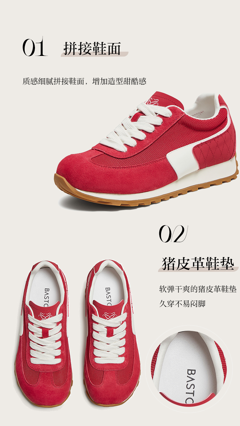 BASTO(百思图),品牌拥有17年历史,秉承优雅、甜美、清新的设计理念,主张“好嫁风”的产品风格,将甜美俏丽的少女情怀融合优雅气质的时尚品味,塑造出唯美优雅、受欢迎的女鞋款式。主打以女性温柔与亲和力为特色的流行时尚产品,糅合雅致又富有亲和力的裸粉色调,淑媛端庄、清新甜美。目前品牌已开设线下门店达1400多家。