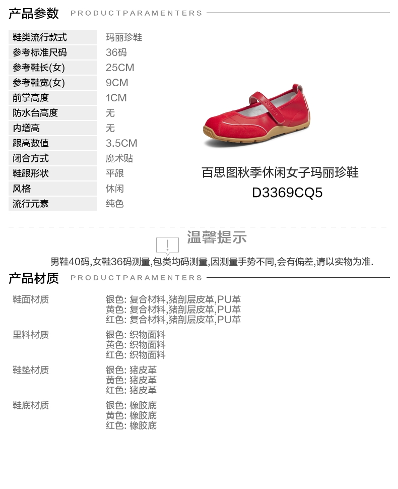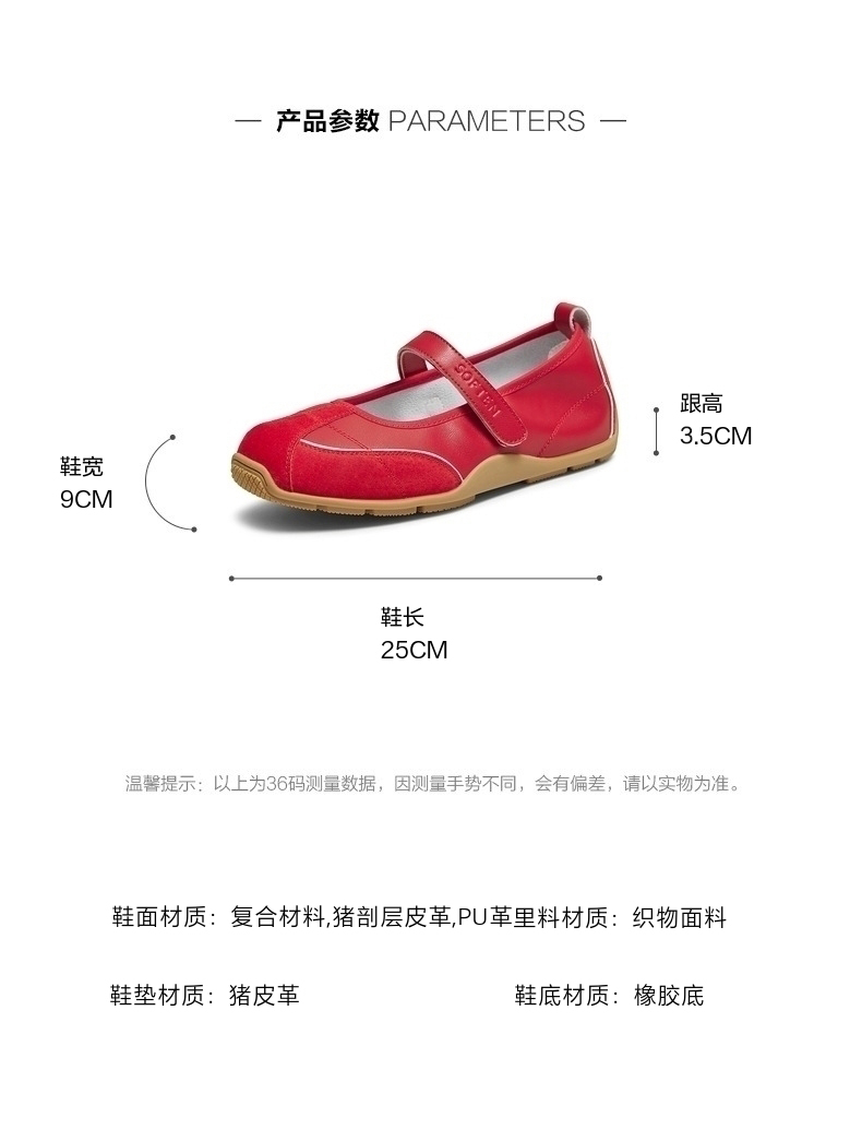 | 上市时间:2025年秋季 | 鞋类流行款式:玛丽珍鞋 | 鞋头款式:圆头 | 鞋面图案:纯色 | 鞋跟形状:平跟 |