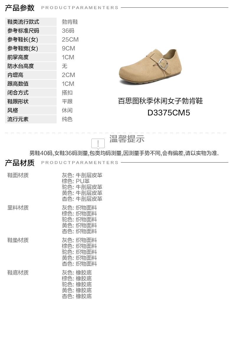 | 配跟:无 | 上市时间:2025年秋季 | 鞋类流行款式:勃肯鞋 | 鞋头款式:圆头 | 鞋面图案:纯色 |