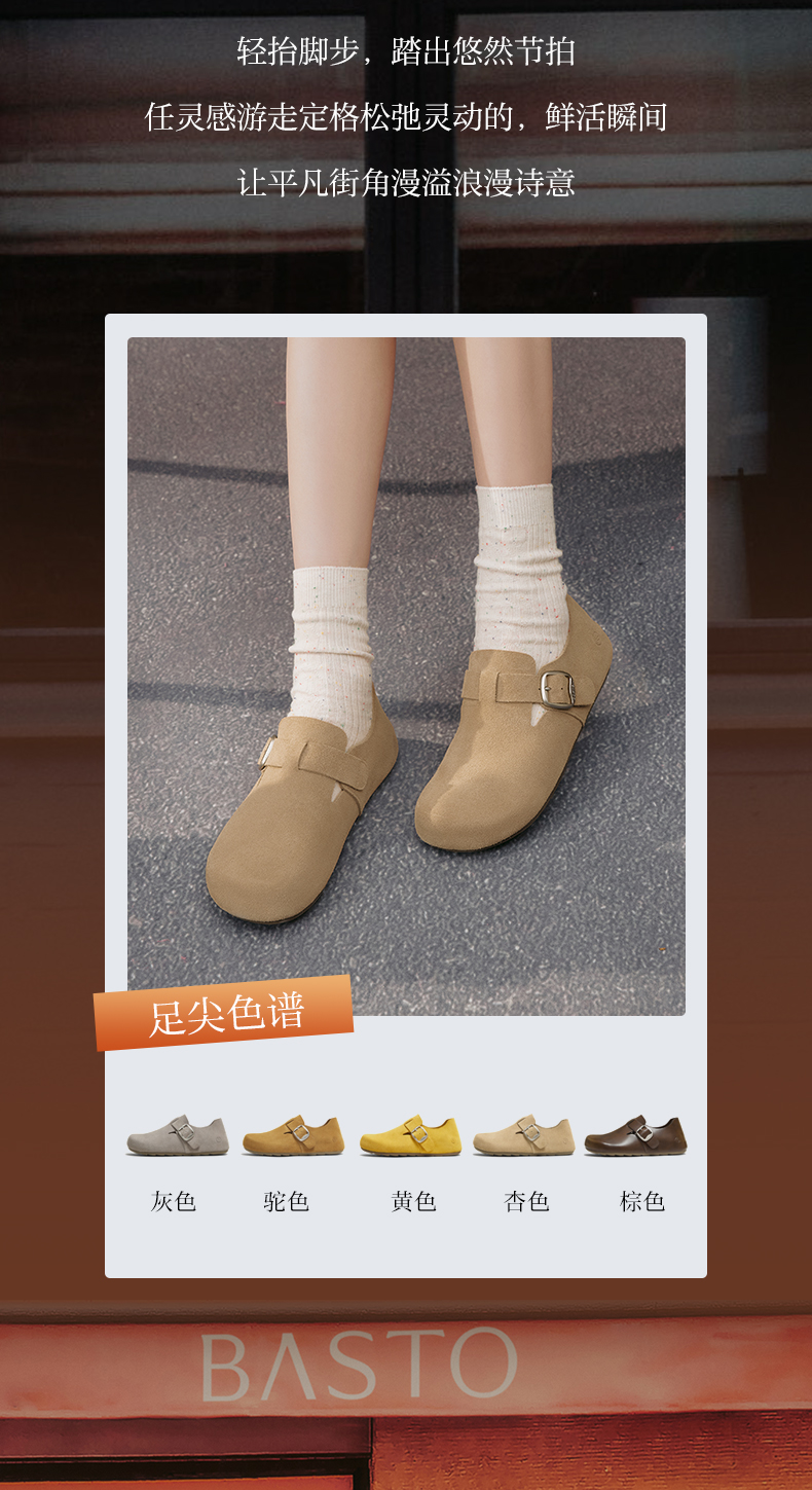 BASTO(百思图),品牌拥有17年历史,秉承优雅、甜美、清新的设计理念,主张“好嫁风”的产品风格,将甜美俏丽的少女情怀融合优雅气质的时尚品味,塑造出唯美优雅、受欢迎的女鞋款式。主打以女性温柔与亲和力为特色的流行时尚产品,糅合雅致又富有亲和力的裸粉色调,淑媛端庄、清新甜美。目前品牌已开设线下门店达1400多家。
