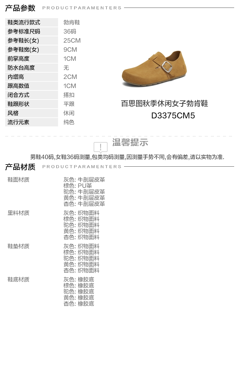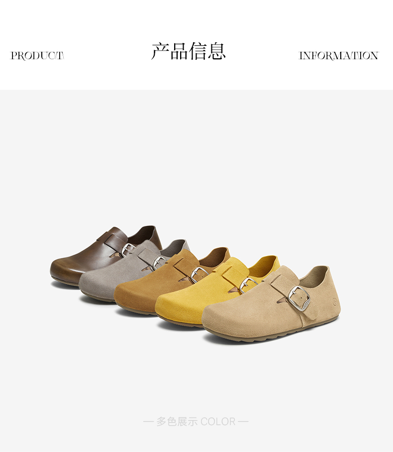 | 配跟:无 | 上市时间:2025年秋季 | 鞋类流行款式:勃肯鞋 | 鞋头款式:圆头 | 鞋面图案:纯色 |
