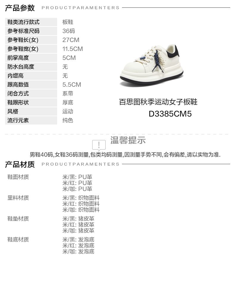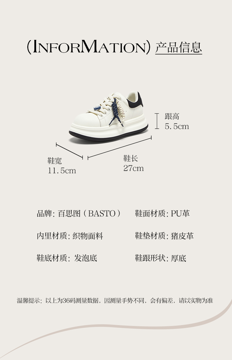 鞋跟形状:厚底 参考鞋长(女):27CM 流行元素:纯色 参考鞋宽(女):11.5CM 风格:运动