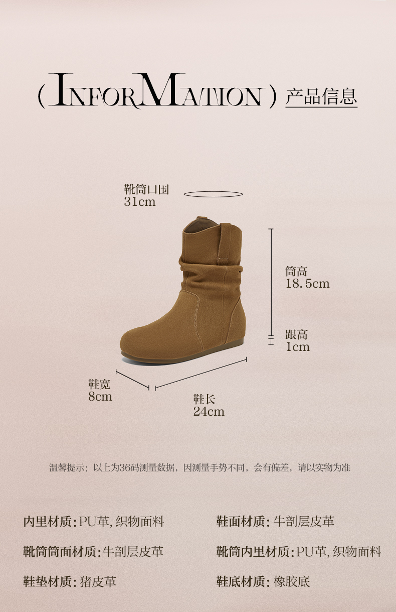| 配跟:无 | 靴筒口围:31CM | 上市时间:2025年冬季 | 鞋类流行款式:西部靴 | 鞋头款式:圆头 |