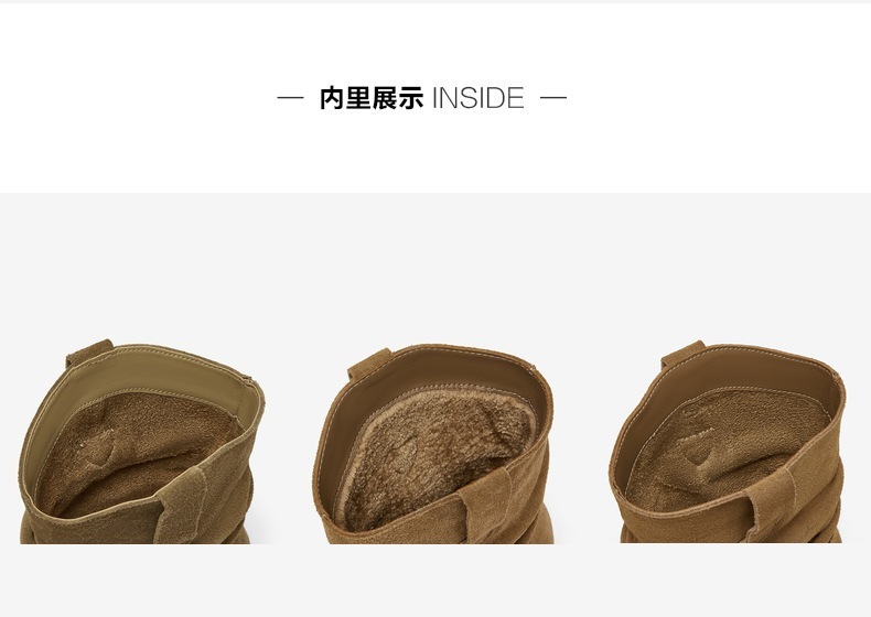 | 靴筒筒面材质:牛剖层皮革 | 里料材质:PU革织物面料 | 制鞋工艺:胶贴皮鞋 | 鞋垫材质:猪皮革 | 款式季节:冬季 |