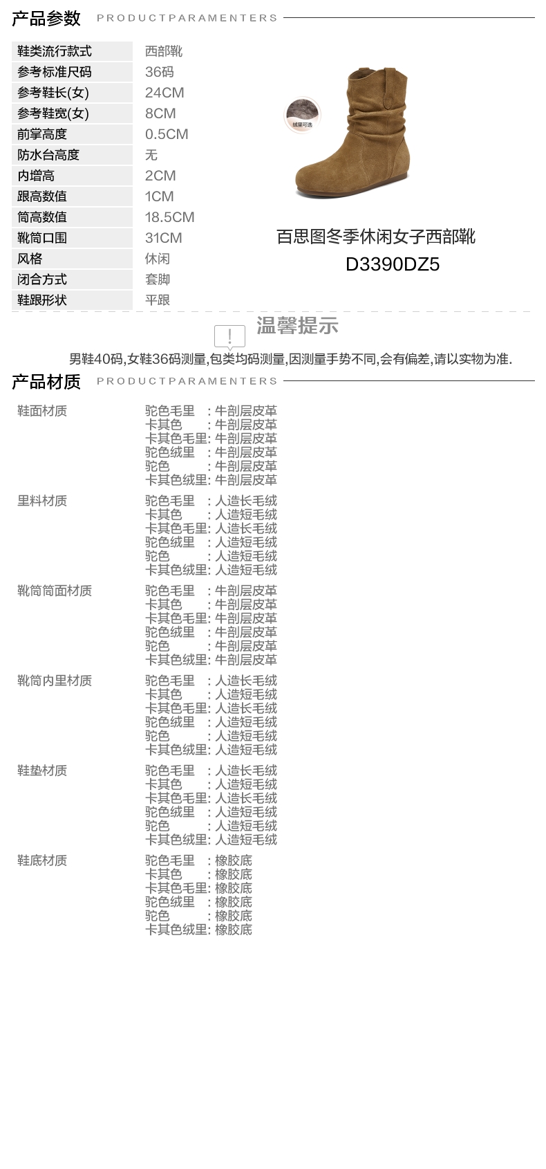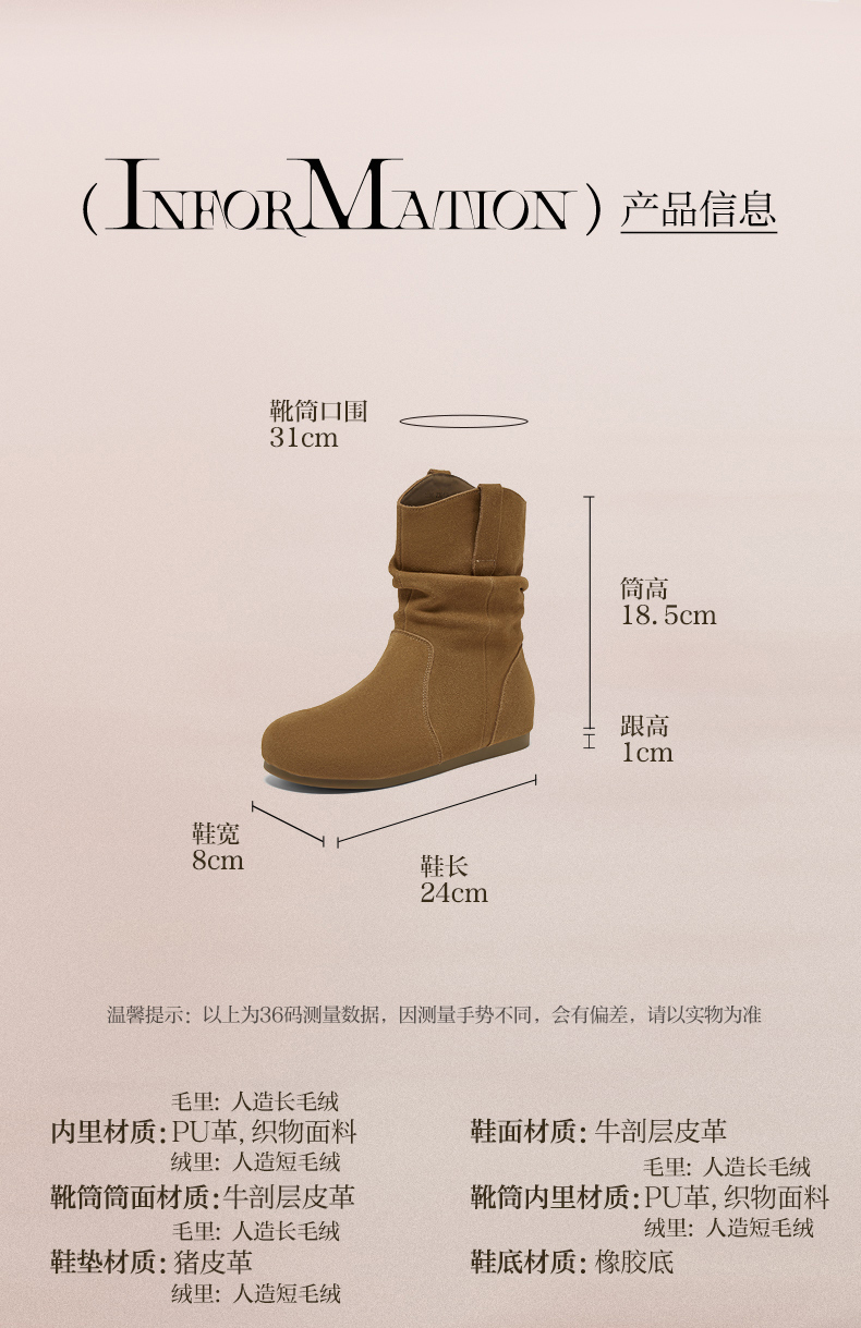 | 配跟:无 | 靴筒口围:31CM | 上市时间:2025年冬季 | 鞋类流行款式:西部靴 | 鞋头款式:圆头 |