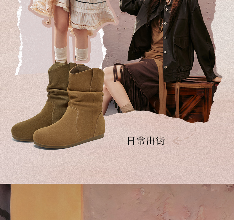 | 鞋底材质:橡胶底 | 靴筒内里材质:人造短毛绒 | 内增高:2CM | 鞋面材质:牛剖层皮革 | 闭合方式:套脚 |