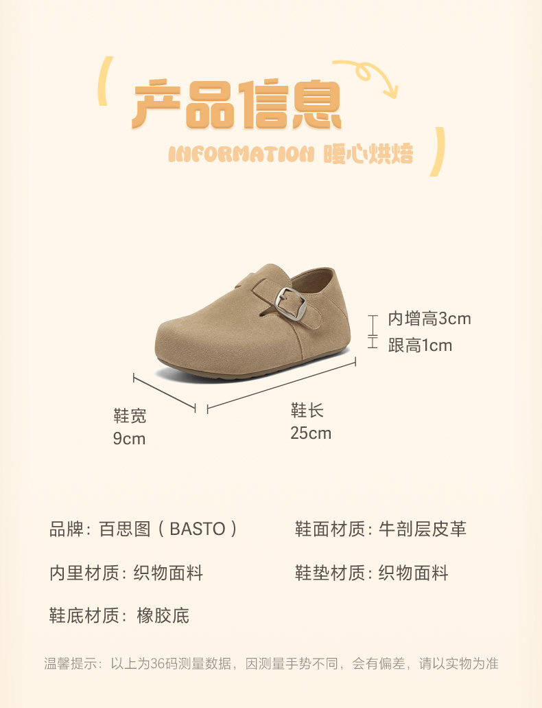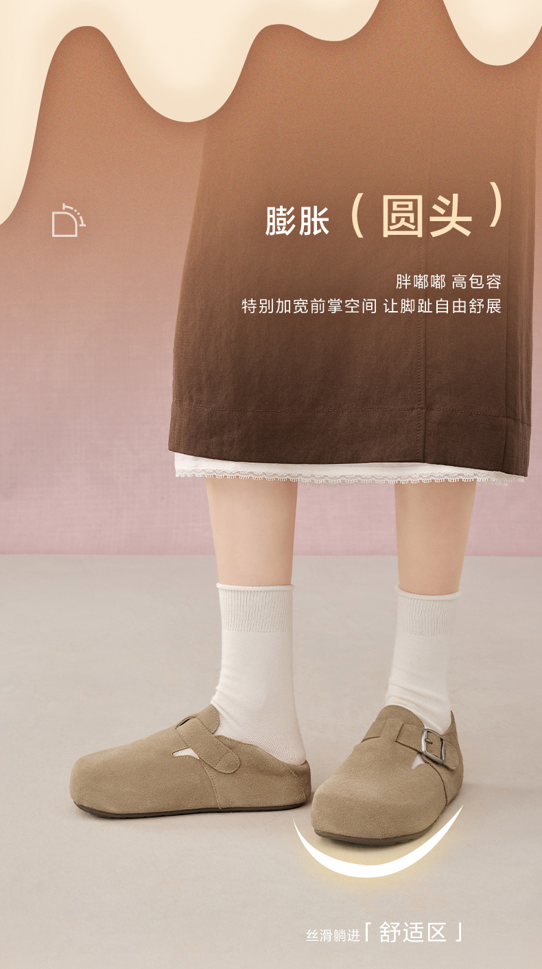 | 配跟:无 | 上市时间:2025年秋季 | 鞋类流行款式:勃肯鞋 | 鞋头款式:圆头 | 鞋面图案:纯色 |