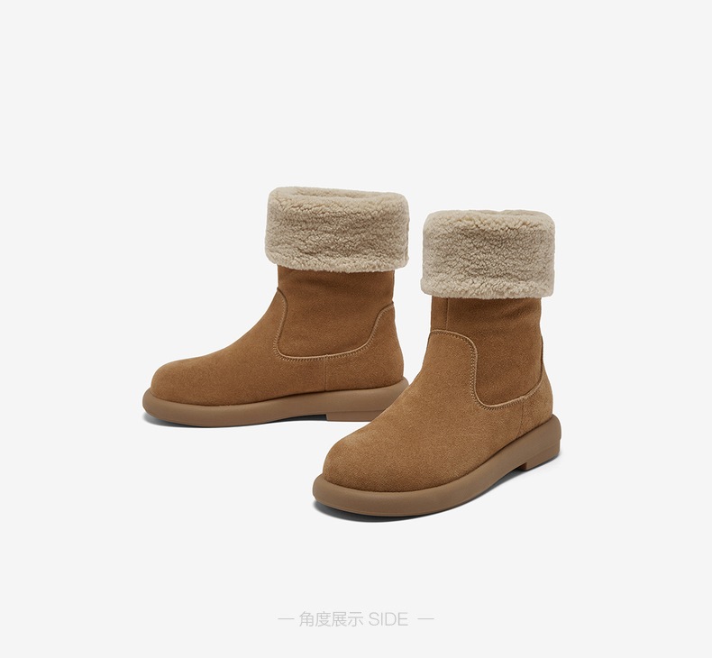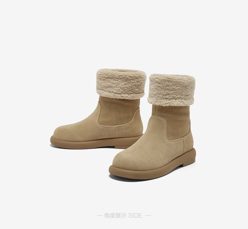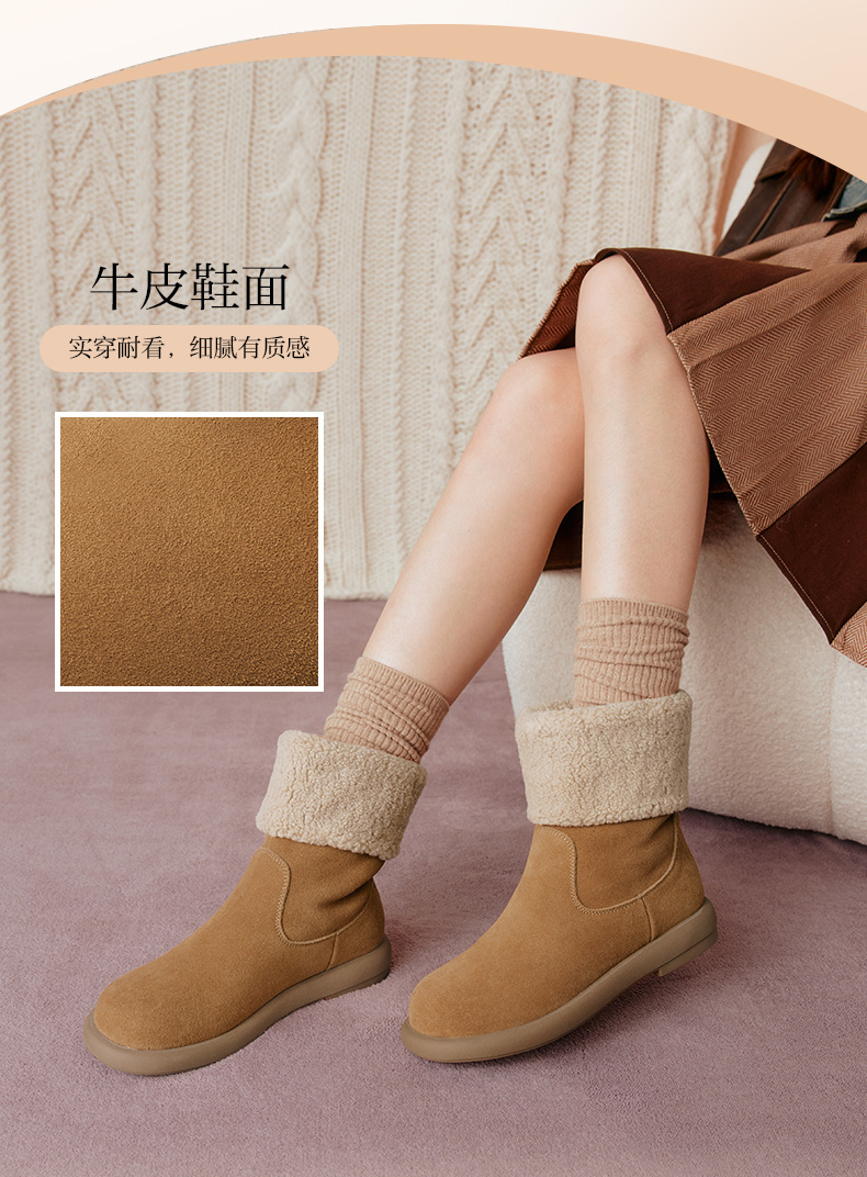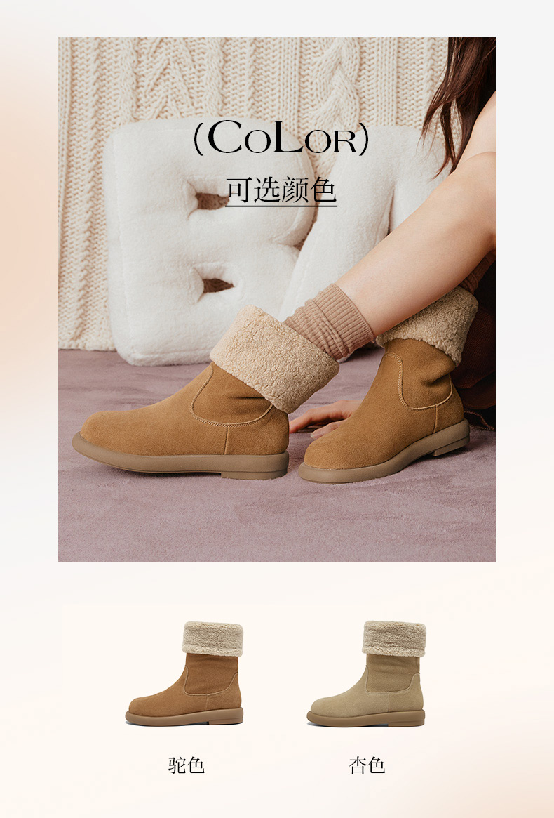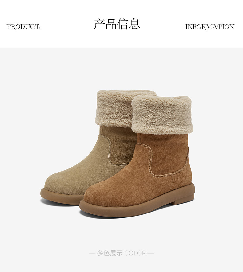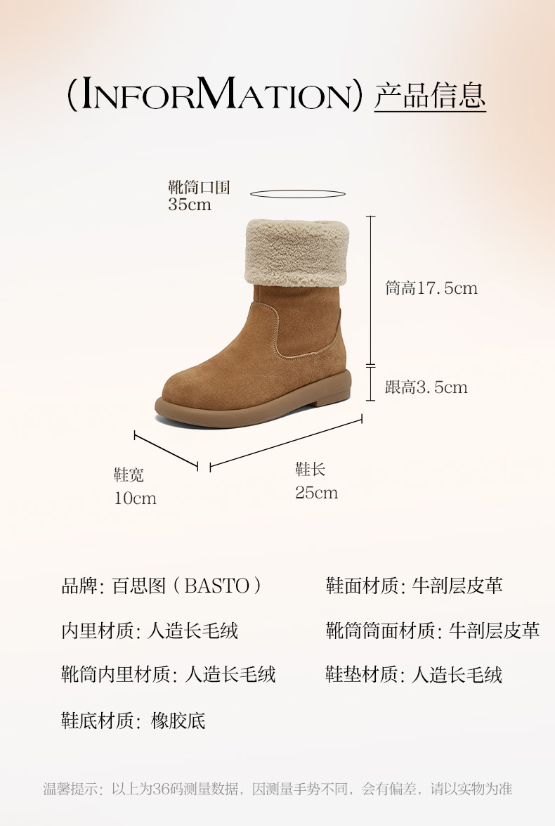 | 帮面材质:牛剖层革 | 配跟:无 | 靴筒口围:35CM | 上市时间:2025年冬季 | 鞋类流行款式:雪地靴 |