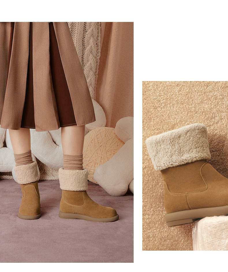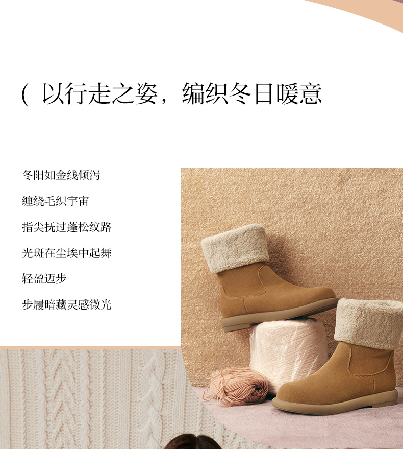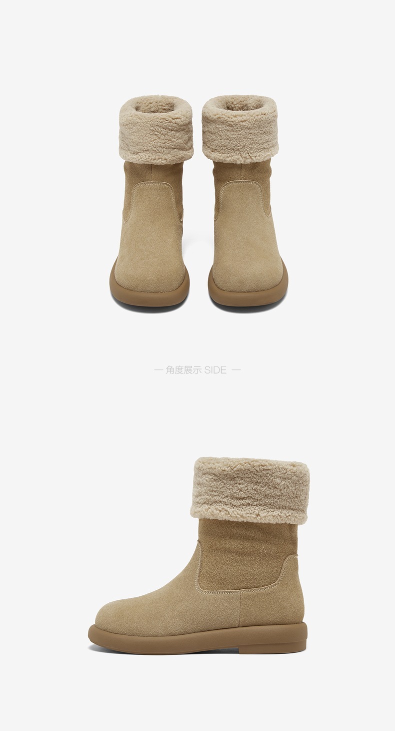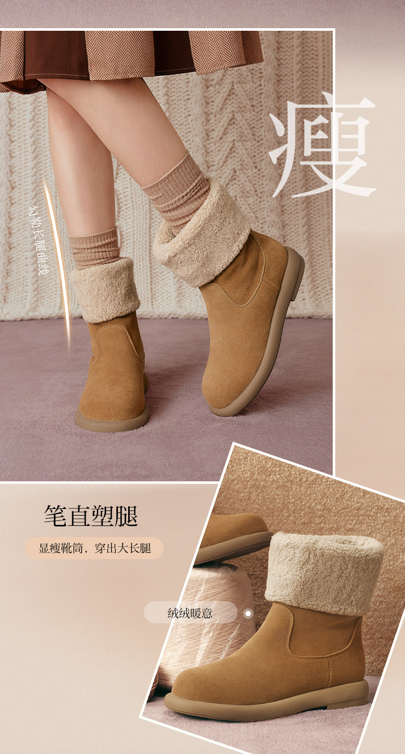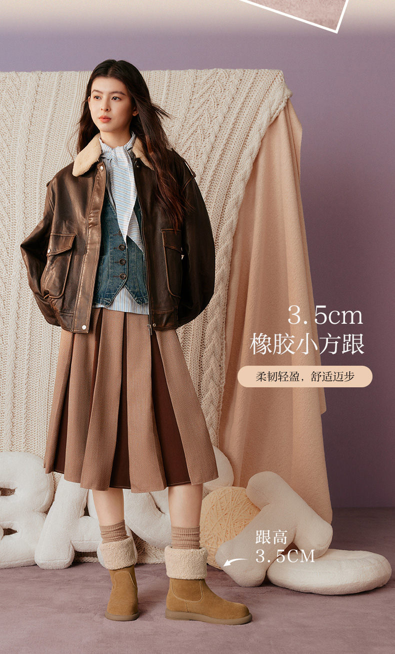 | 帮面材质:牛剖层革 | 配跟:无 | 靴筒口围:35CM | 上市时间:2025年冬季 | 鞋类流行款式:雪地靴 |