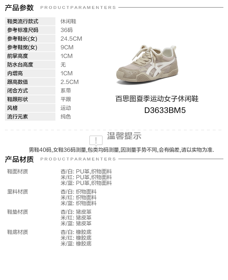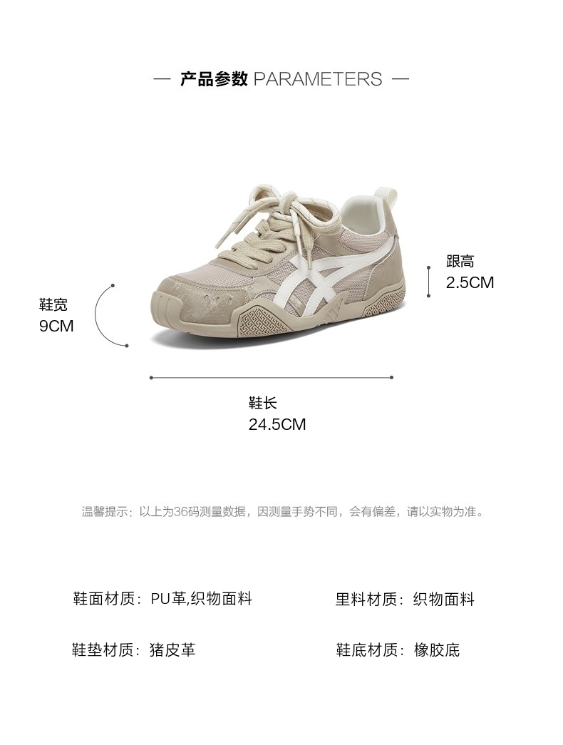 | 鞋帮:低帮 | 鞋底材质:橡胶底 | 内增高:1CM | 鞋面材质:织物面料PU革 | 闭合方式:系带 |