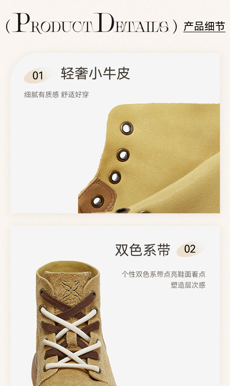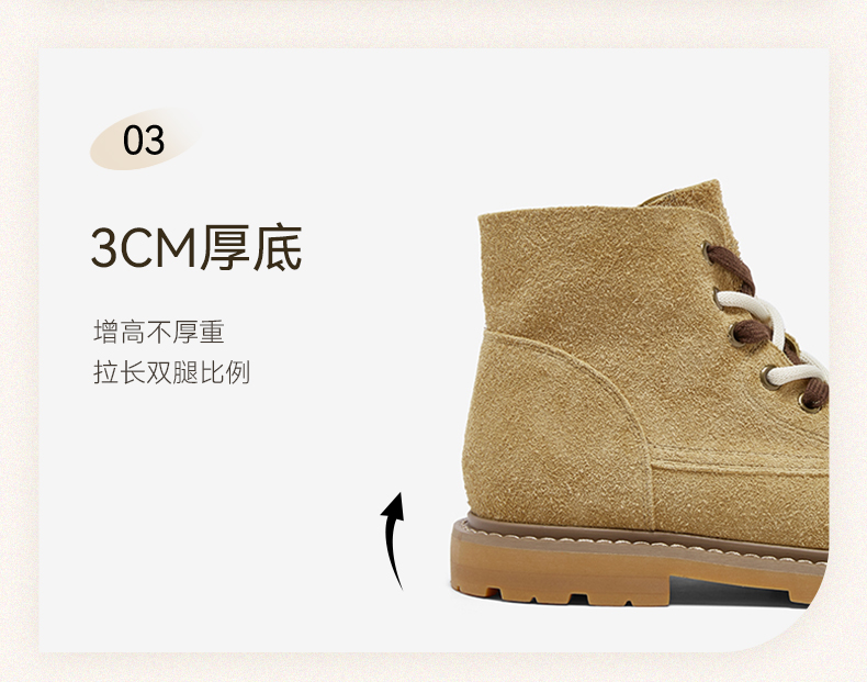 | 鞋底材质:橡胶底 | 靴筒内里材质:织物面料PU革 | 内增高:无 | 鞋面材质:牛皮革 | 闭合方式:系带 |