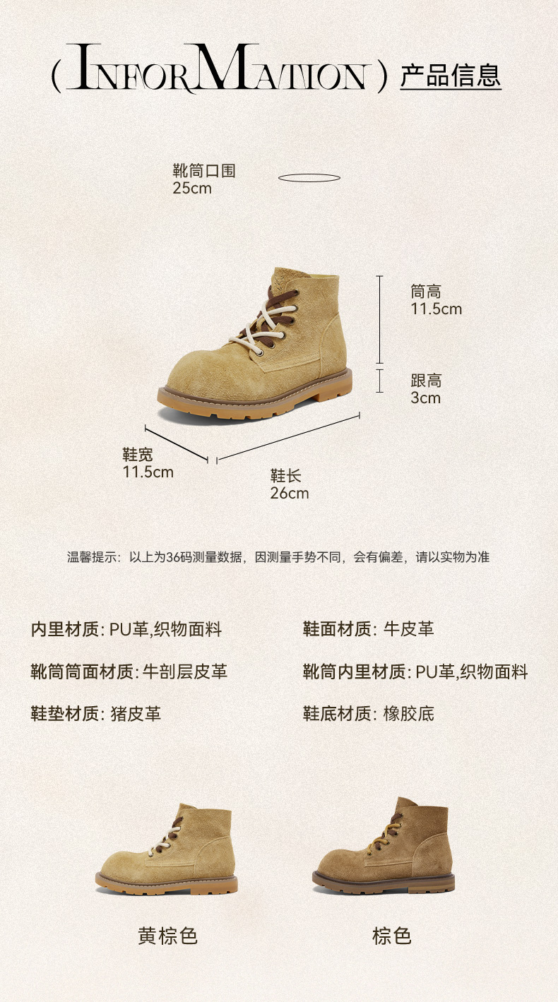 | 帮面材质:牛皮 | 配跟:无 | 靴筒口围:25CM | 上市时间:2025年冬季 | 鞋类流行款式:马丁靴 |