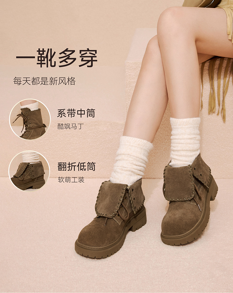 | 帮面材质:牛剖层革 | 配跟:无 | 靴筒口围:32.5CM | 上市时间:2025年冬季 | 鞋类流行款式:马丁靴 |