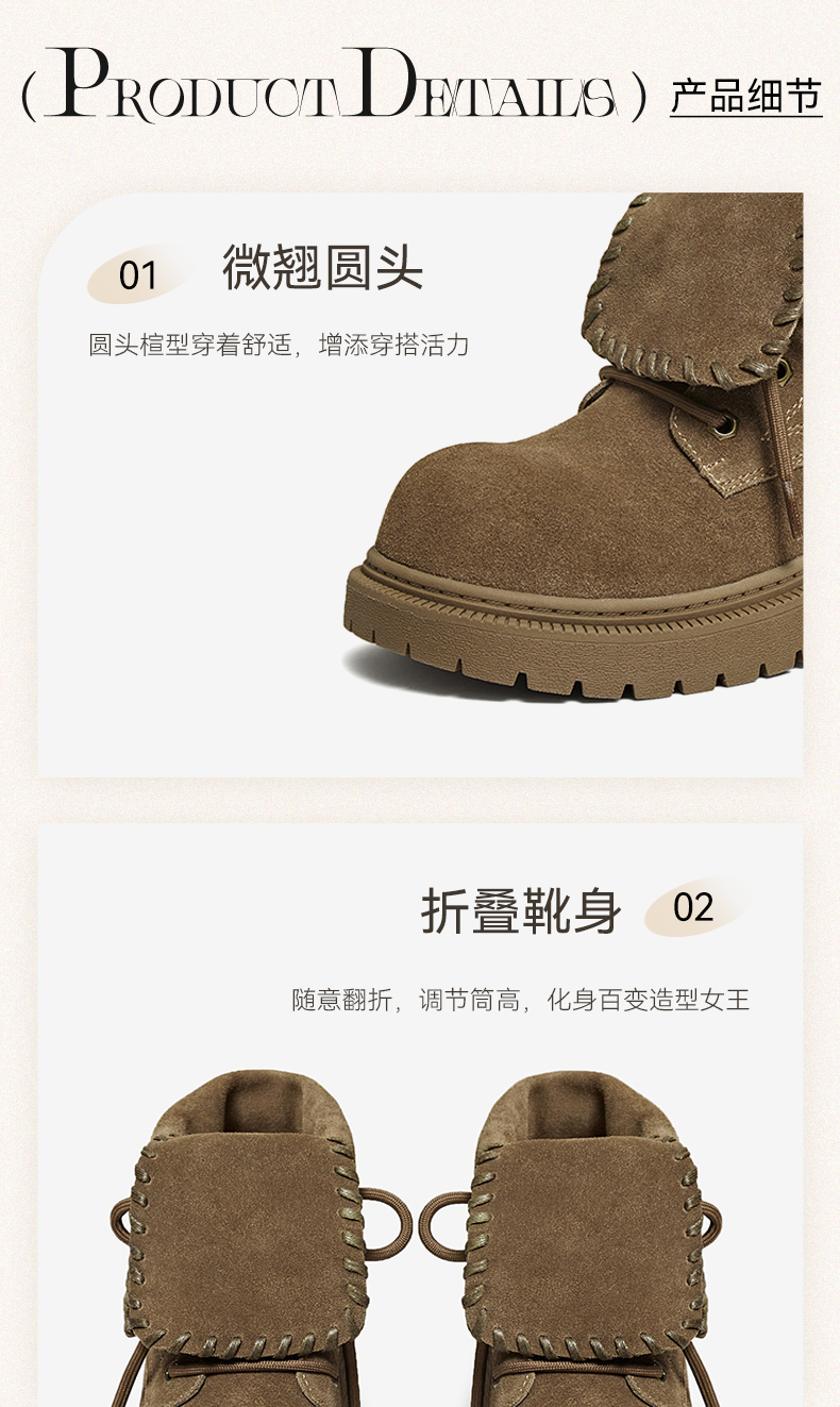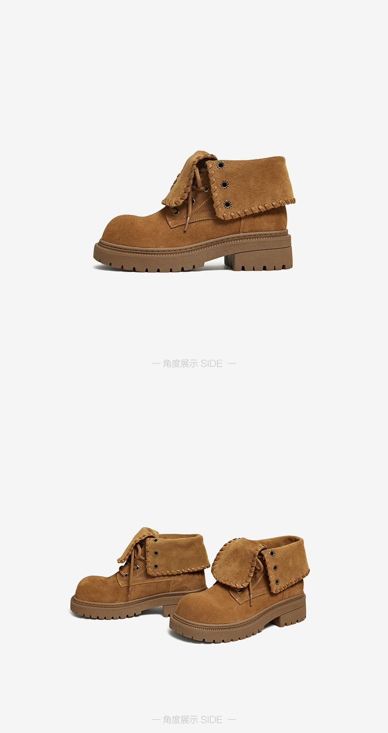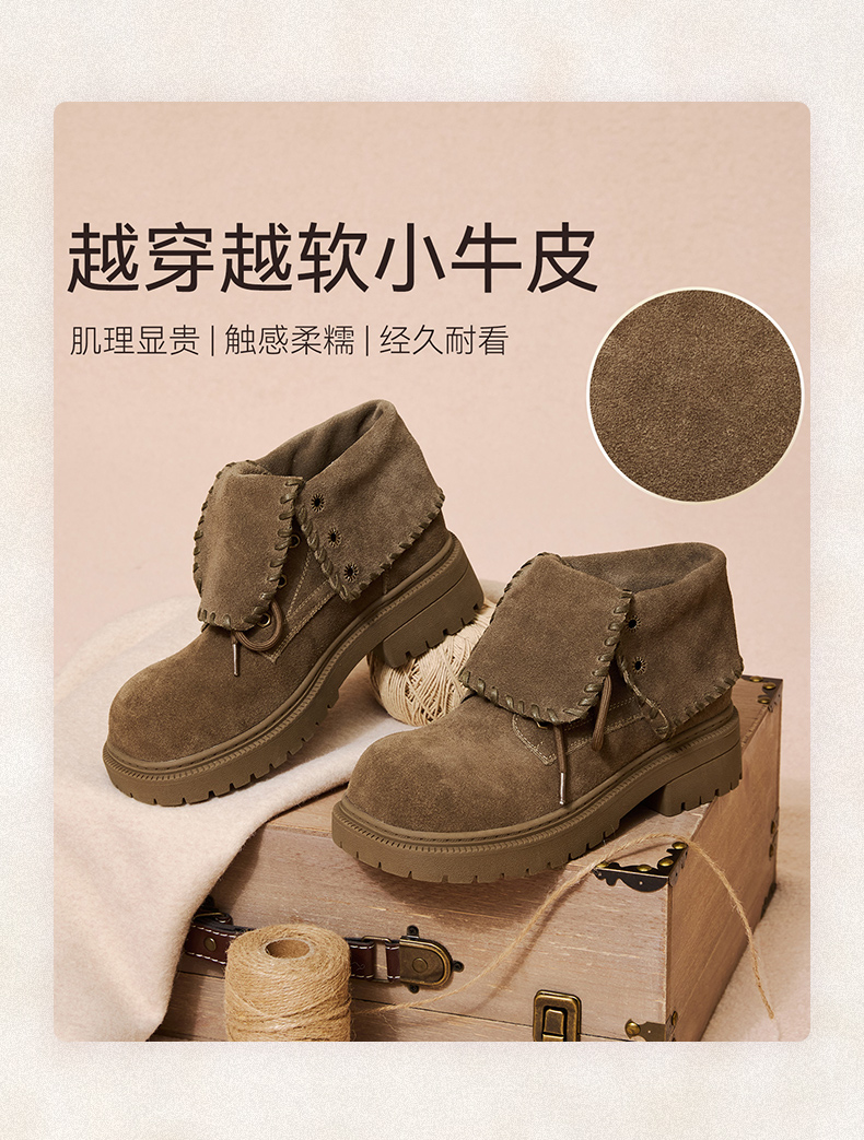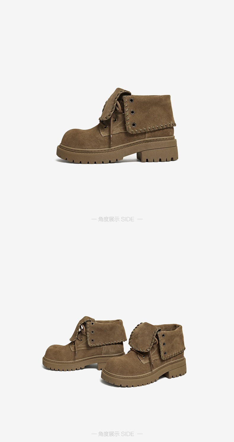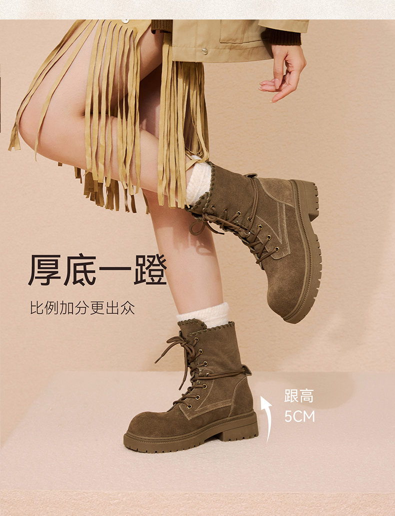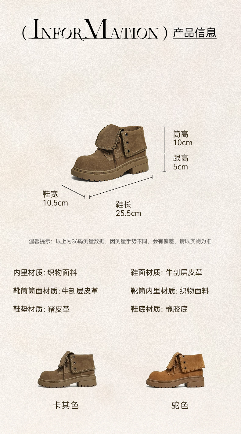 | 帮面材质:牛剖层革 | 配跟:无 | 靴筒口围:32.5CM | 上市时间:2025年冬季 | 鞋类流行款式:马丁靴 |