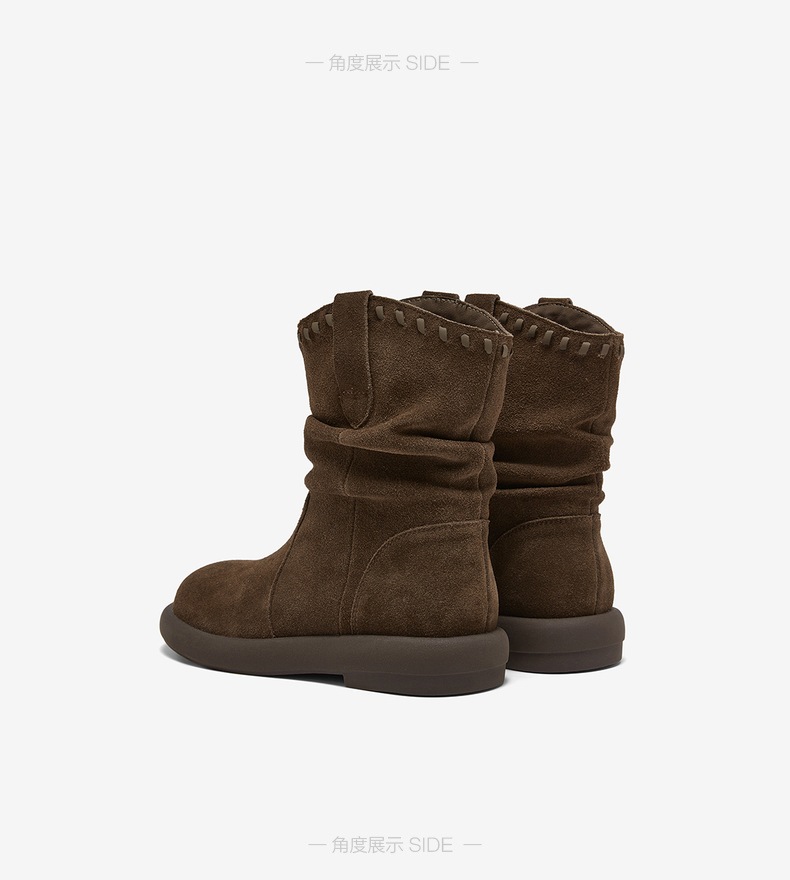 | 鞋底材质:橡胶底 | 靴筒内里材质:人造短毛绒 | 内增高:无 | 鞋面材质:牛剖层皮革 | 闭合方式:套脚 |