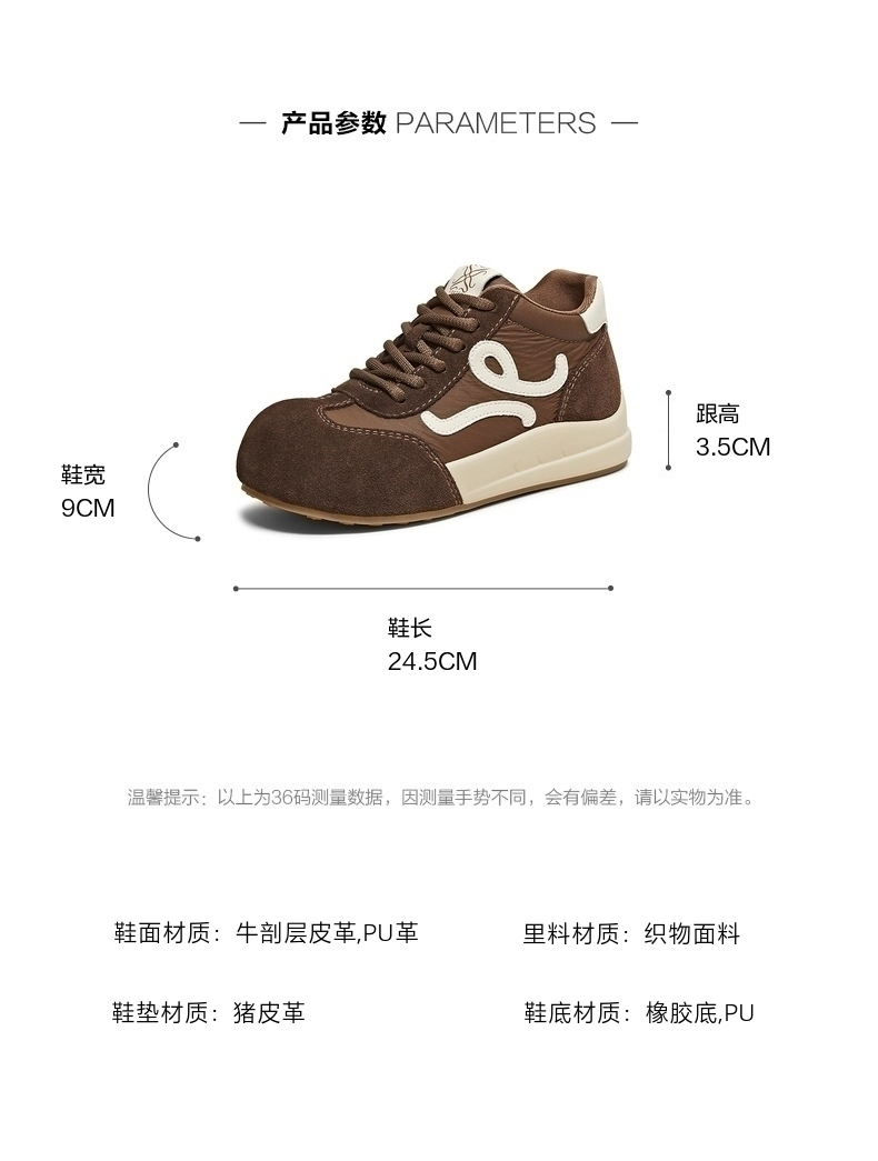 | 鞋帮:低帮 | 鞋底材质:PU橡胶底 | 内增高:无 | 鞋面材质:PU革牛剖层皮革 | 闭合方式:系带 |