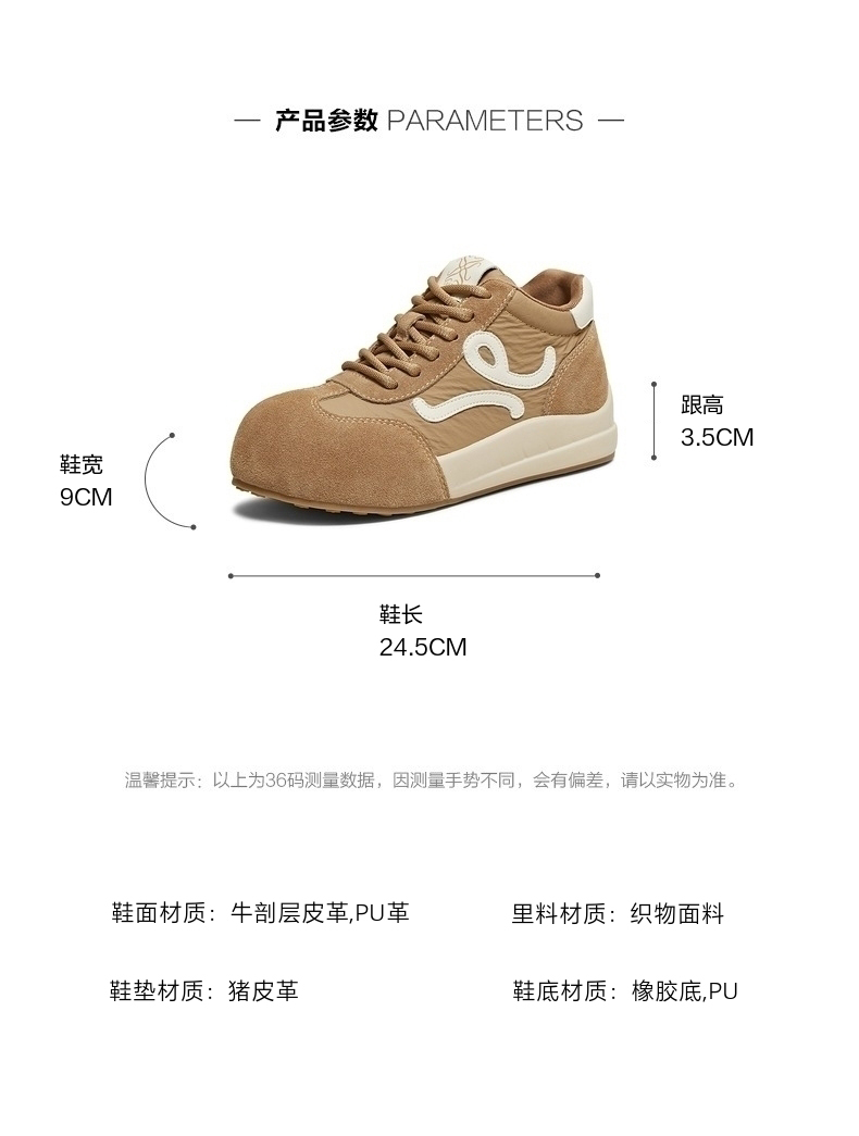| 鞋帮:低帮 | 鞋底材质:PU橡胶底 | 内增高:无 | 鞋面材质:牛剖层皮革PU革 | 闭合方式:系带 |