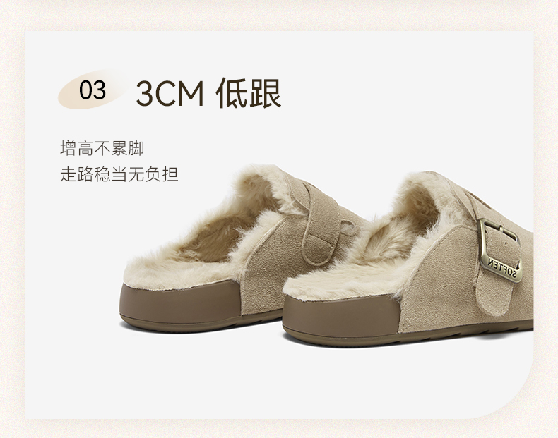 | 跟高数值:3CM | 性别:女子 | 筒高数值:无 | 里料材质:人造毛绒 | 制鞋工艺:胶贴皮鞋 |