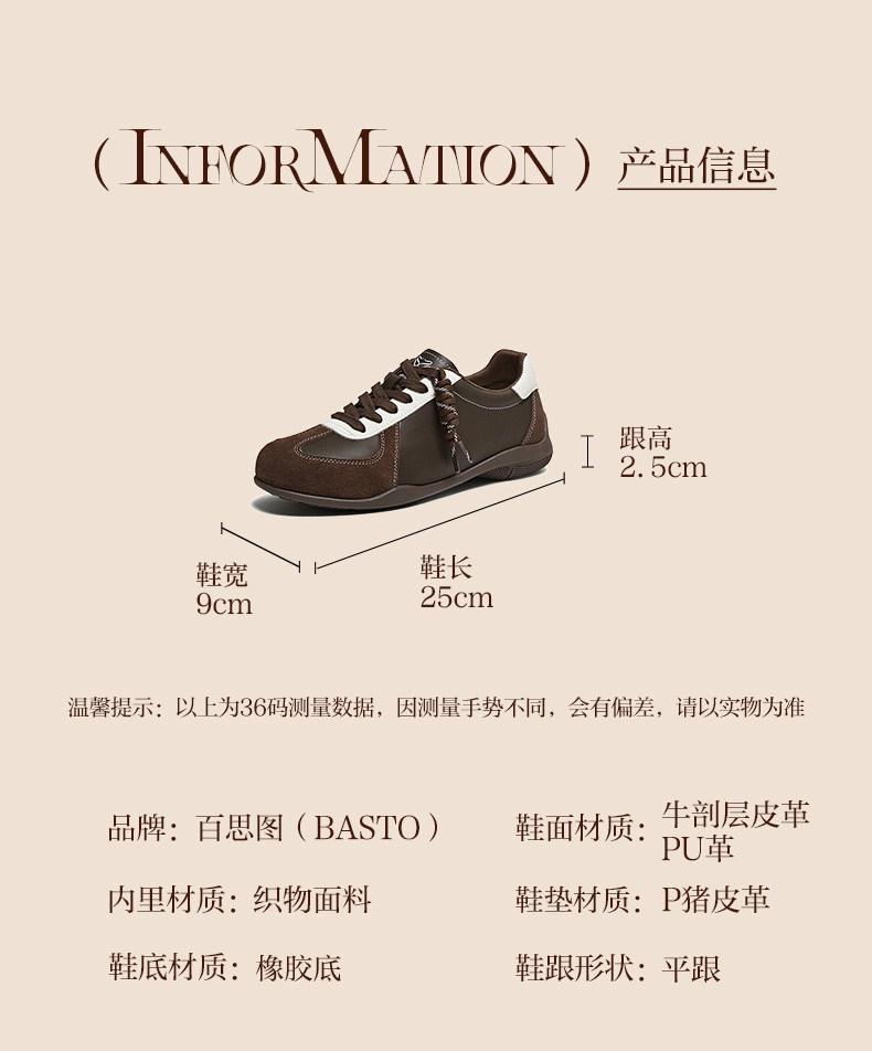 | 鞋帮:低帮 | 鞋底材质:橡胶底 | 内增高:无 | 鞋面材质:PU革牛剖层皮革 | 闭合方式:系带 |