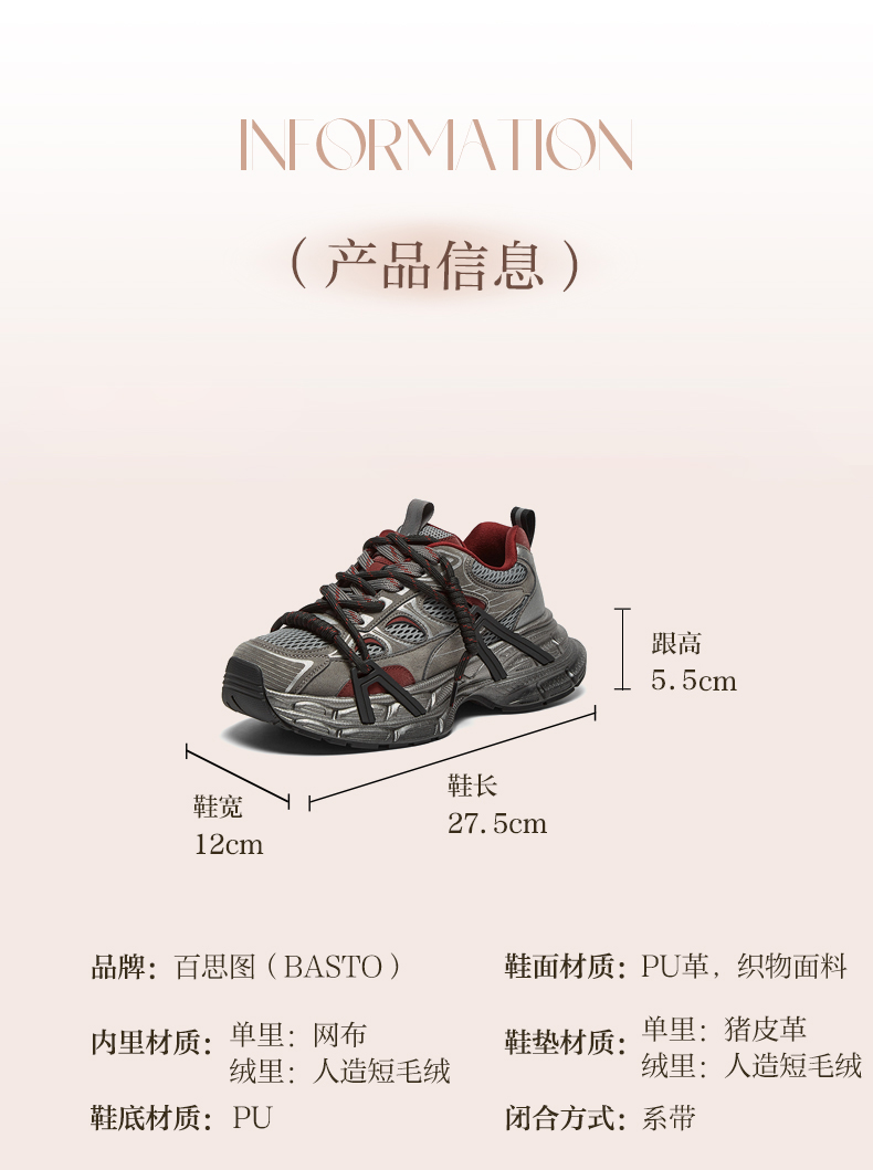 | 配跟:无 | 上市时间:2025年春季 | 鞋类流行款式:老爹鞋 | 鞋头款式:圆头 | 鞋面图案:纯色 |