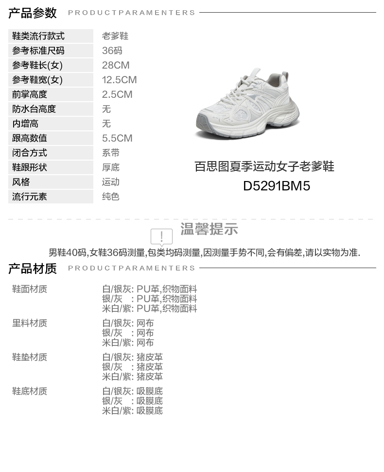 | 风格分类:老爹鞋 | 上市时间:2025年夏季 | 生产/经销/进口厂家:丽荣鞋业(深圳)有限公司 | 鞋类流行款式:老爹鞋 | 鞋头款式:圆头 |