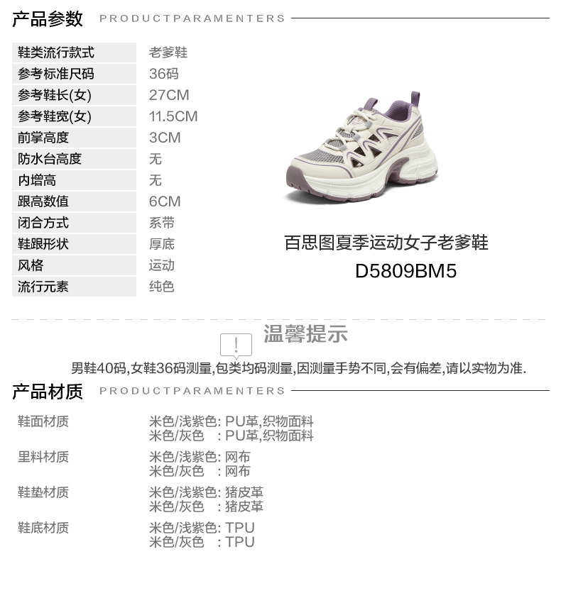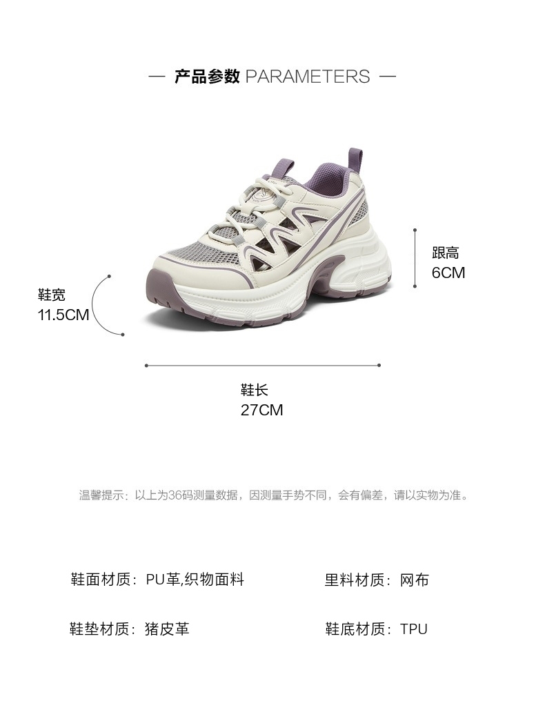 | 配跟:无 | 上市时间:2025年夏季 | 鞋类流行款式:老爹鞋 | 鞋头款式:圆头 | 鞋面图案:纯色 |
