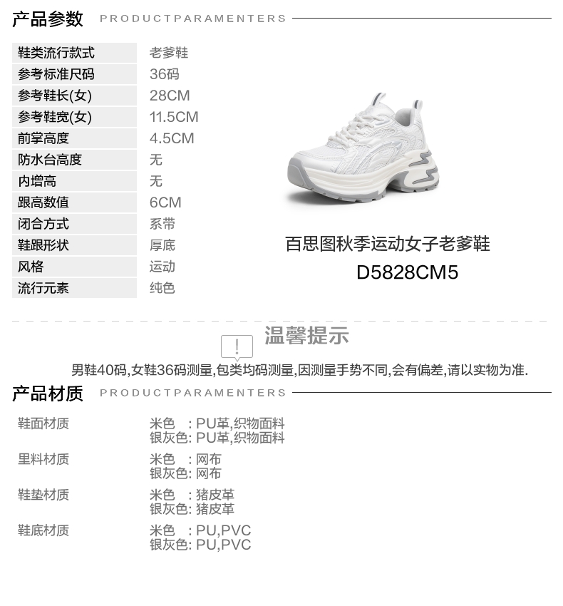 | 配跟:无 | 上市时间:2025年秋季 | 鞋类流行款式:老爹鞋 | 鞋头款式:圆头 | 鞋面图案:纯色 |