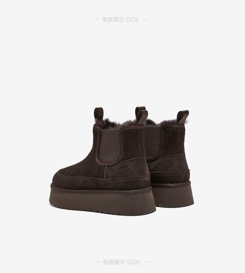 | 参考鞋宽(女):10.5CM | 风格:休闲 | 鞋面内里材质:羊毛人造短毛绒 | 色系:棕色 | 跟高数值:4CM |