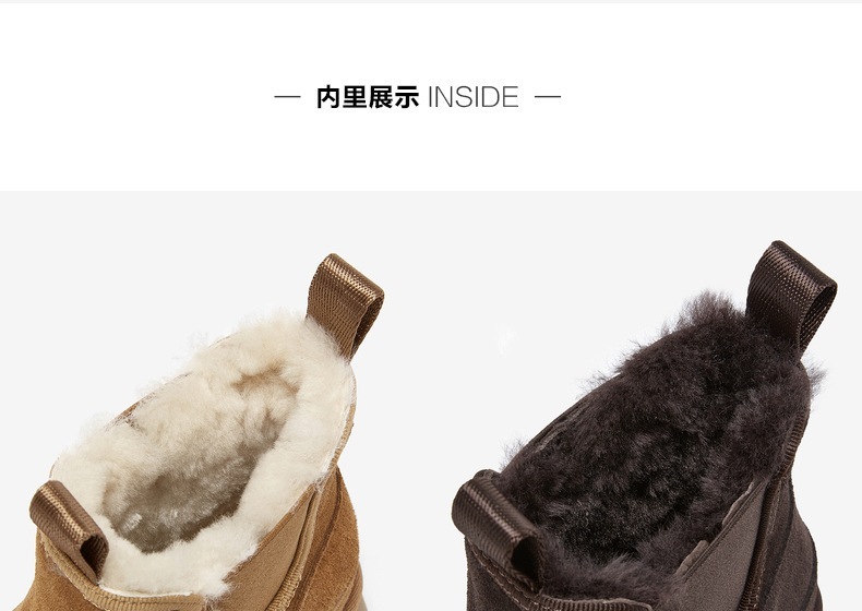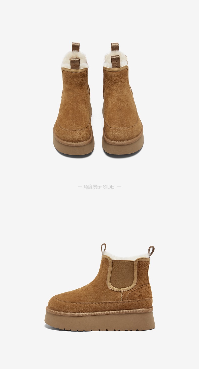 | 帮面材质:牛剖层革织物 | 配跟:无 | 靴筒口围:29.5CM | 上市时间:2025年冬季 | 鞋类流行款式:雪地靴 |