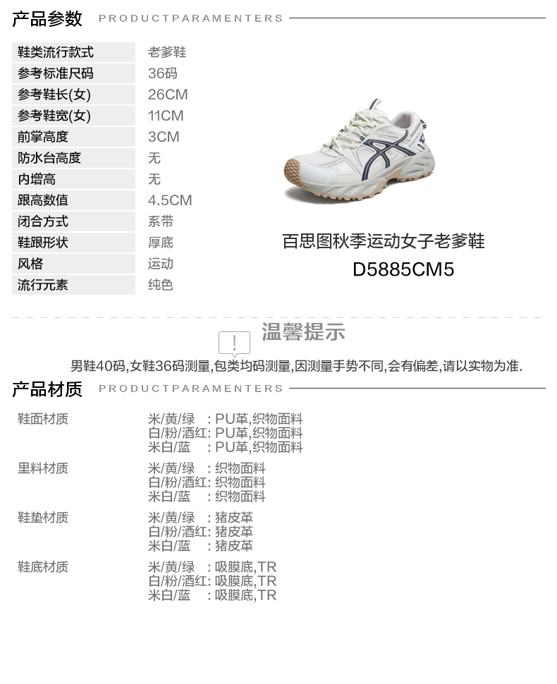 | 配跟:无 | 上市时间:2025年秋季 | 鞋类流行款式:老爹鞋 | 鞋头款式:圆头 | 鞋面图案:纯色 |