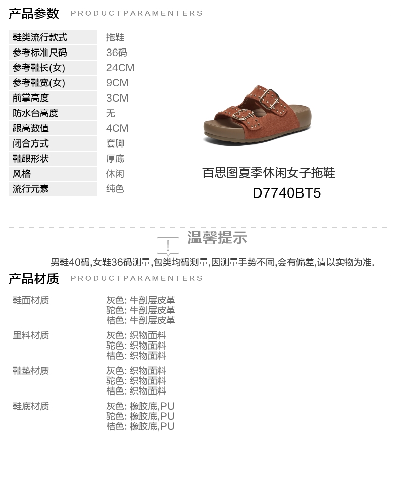 | 鞋类流行款式:拖鞋 | 鞋头款式:露趾 | 执行标准:拖鞋 QB/T 4552-2020 | 跟高范围:中跟鞋(3-5CM) | 鞋面图案:纯色 |
