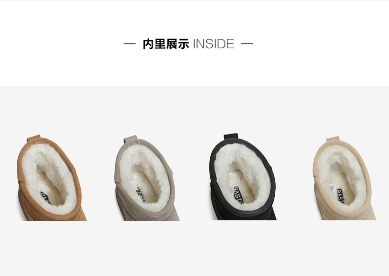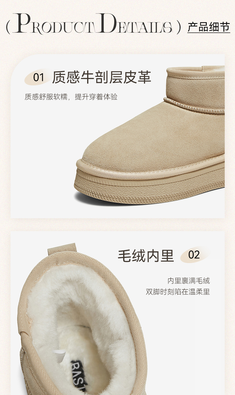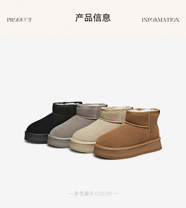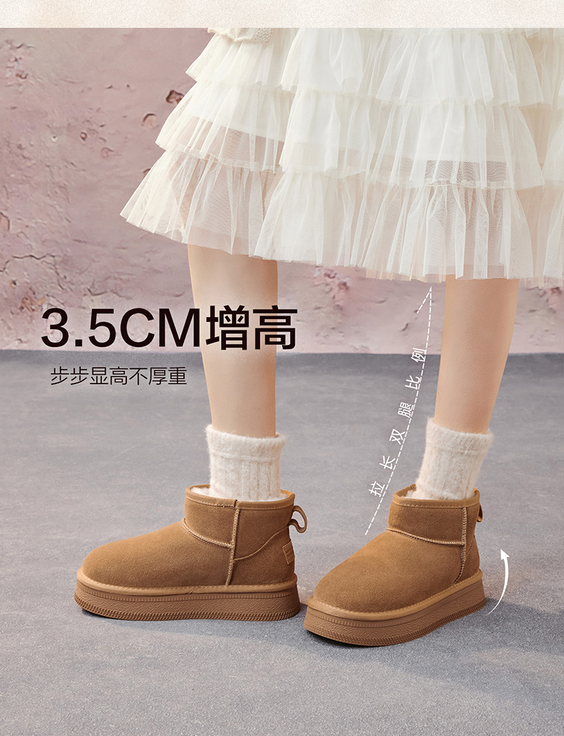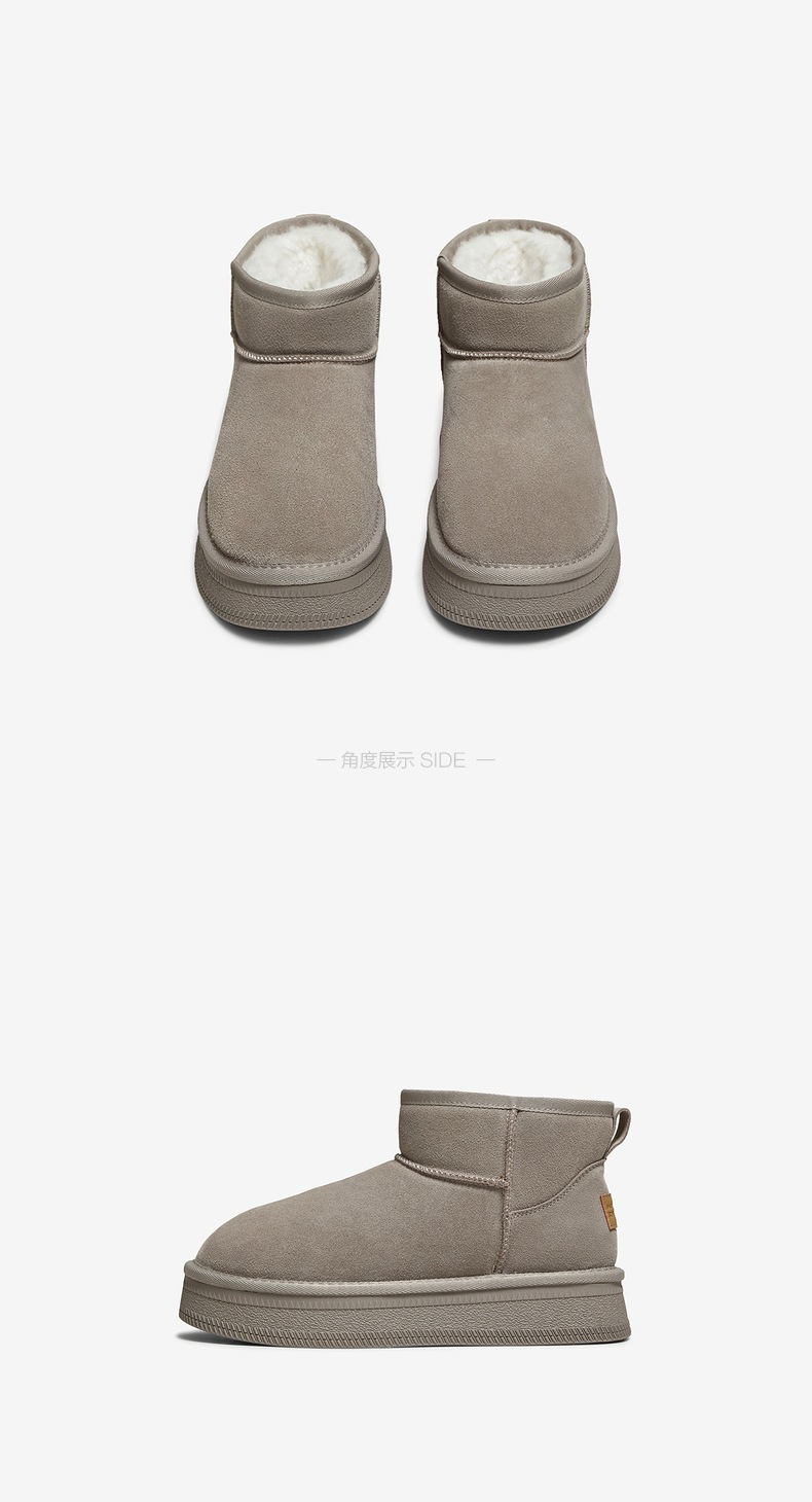 | 帮面材质:牛剖层革 | 配跟:无 | 靴筒口围:33CM | 上市时间:2025年冬季 | 鞋类流行款式:雪地靴 |