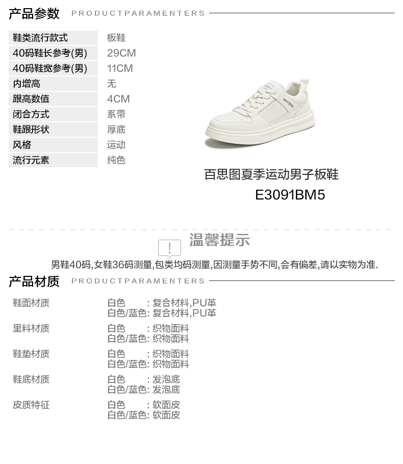 | 鞋面材质:复合材料PU革 | 适用场合:运动休闲 | 闭合方式:系带 | 所在区域:电子商务 | 40码鞋宽参考(男):11CM |