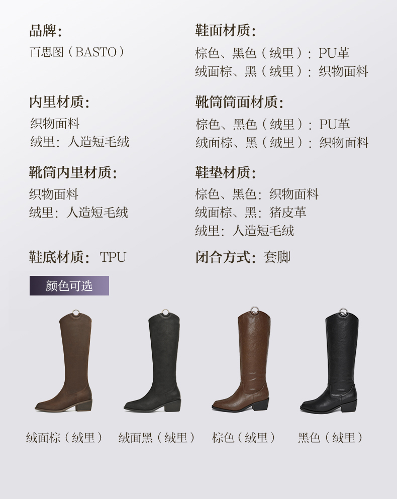 | 风格:时尚潮流 | 色系:棕色 | 跟高数值:5CM | 性别:女子 | 筒高数值:36.5CM |