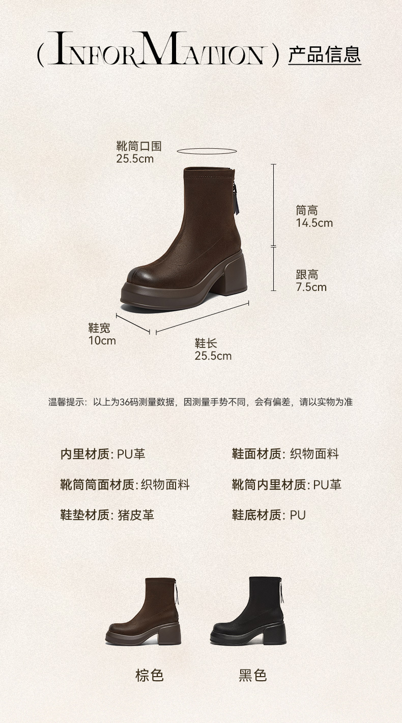 | 配跟:无 | 靴筒口围:25.5CM | 上市时间:2025年冬季 | 鞋类流行款式:时装靴 | 鞋头款式:圆头 |