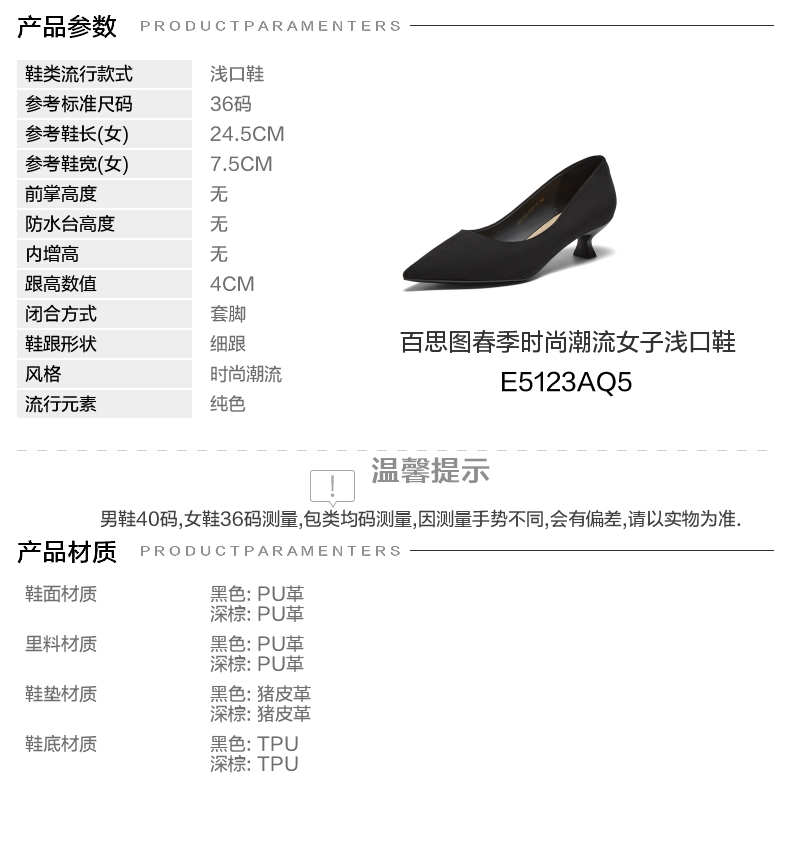| 鞋头款式:尖头 | 鞋底材质:TPU | 鞋面图案:纯色 | 内增高:无 | 鞋跟形状:细跟 |