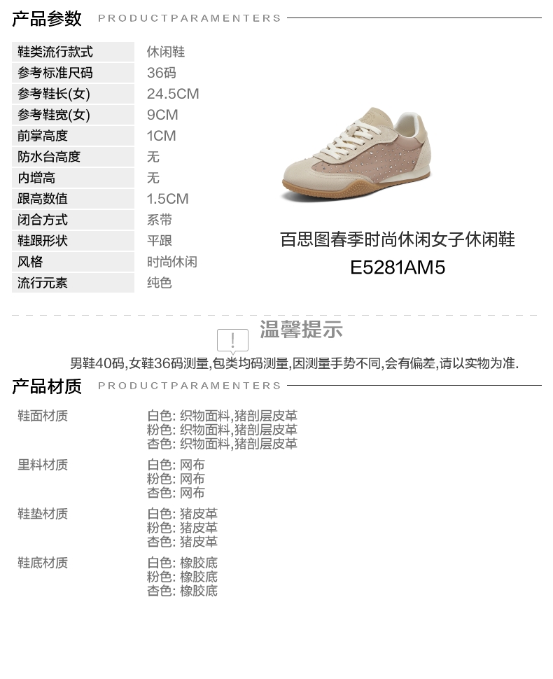 | 流行元素:纯色 | 参考鞋长(女):24.5CM | 参考鞋宽(女):9CM | 风格:时尚休闲 | 年份:2025年 |